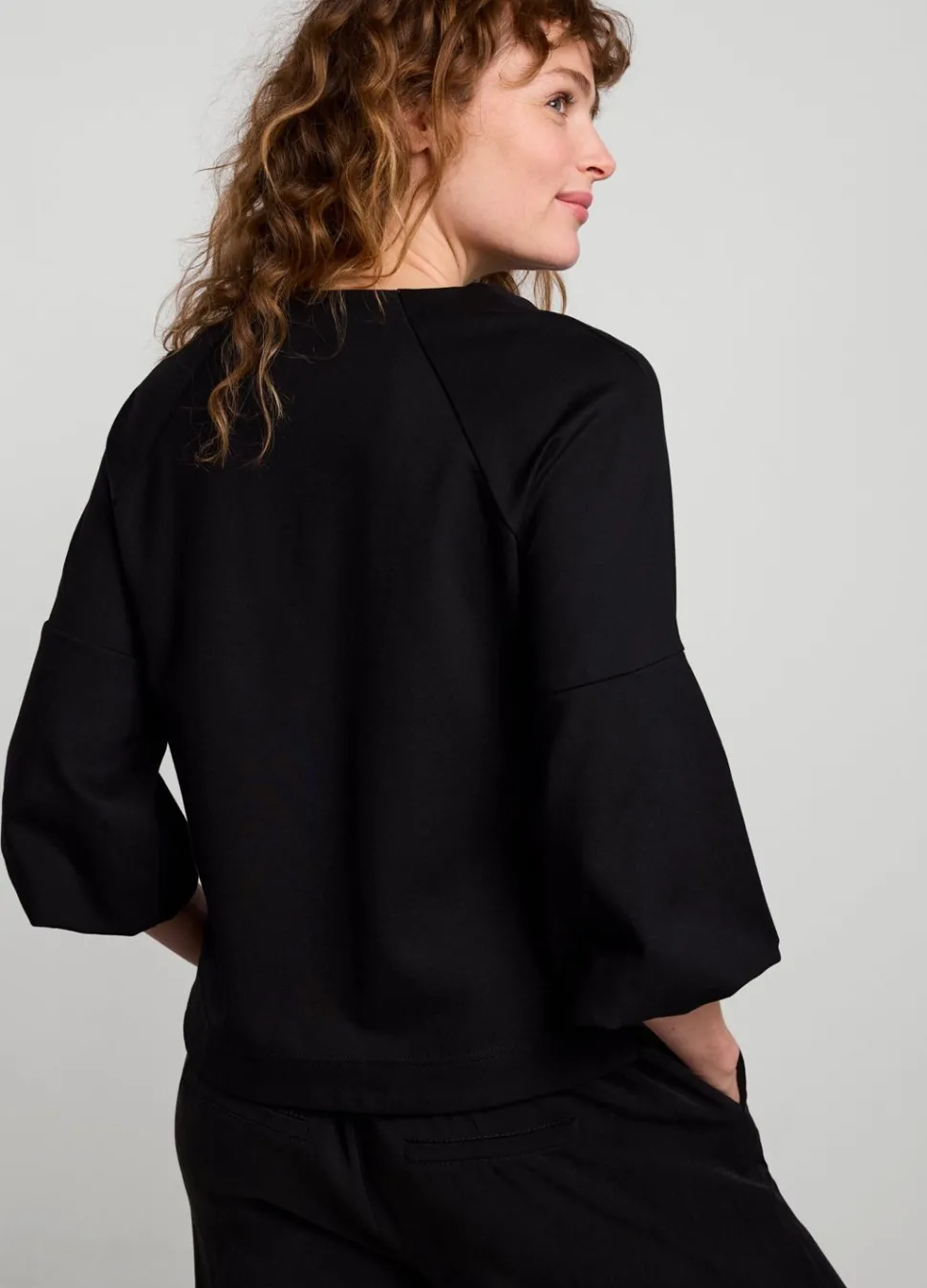 Aangesloten Top Met Een Ronde Hals En Split Met Een Blinde Rits. De Raglanmouwen Lopen Aan De Onderkant Wijd Uit.