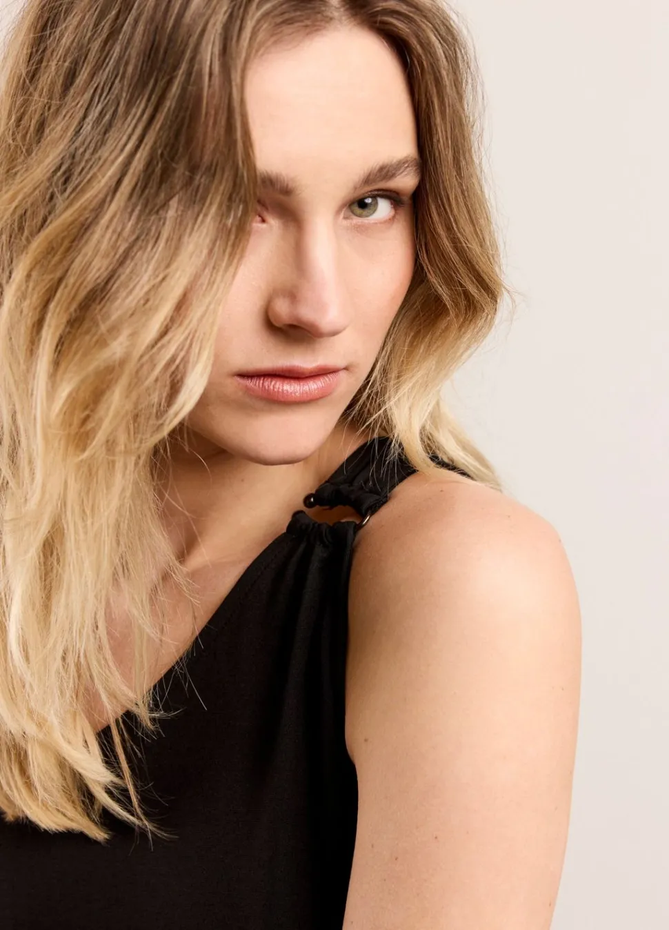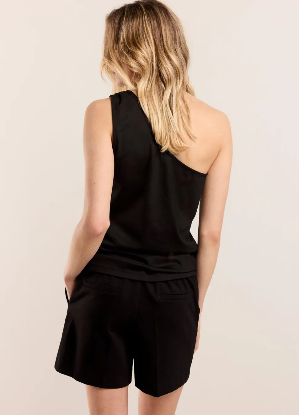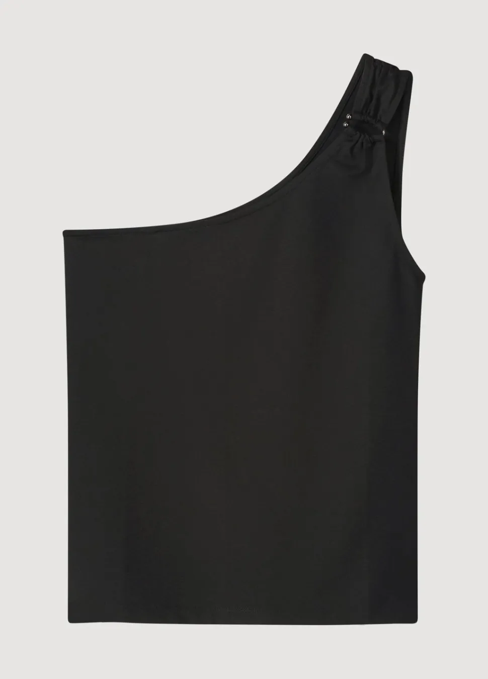Asymmetrisch Singlet Met Een Aangesloten Pasvorm In Een Stevige Viscose-Jersey Stof. De Schouderband Is Versierd Met Een Ovalen Metalen Gesp.