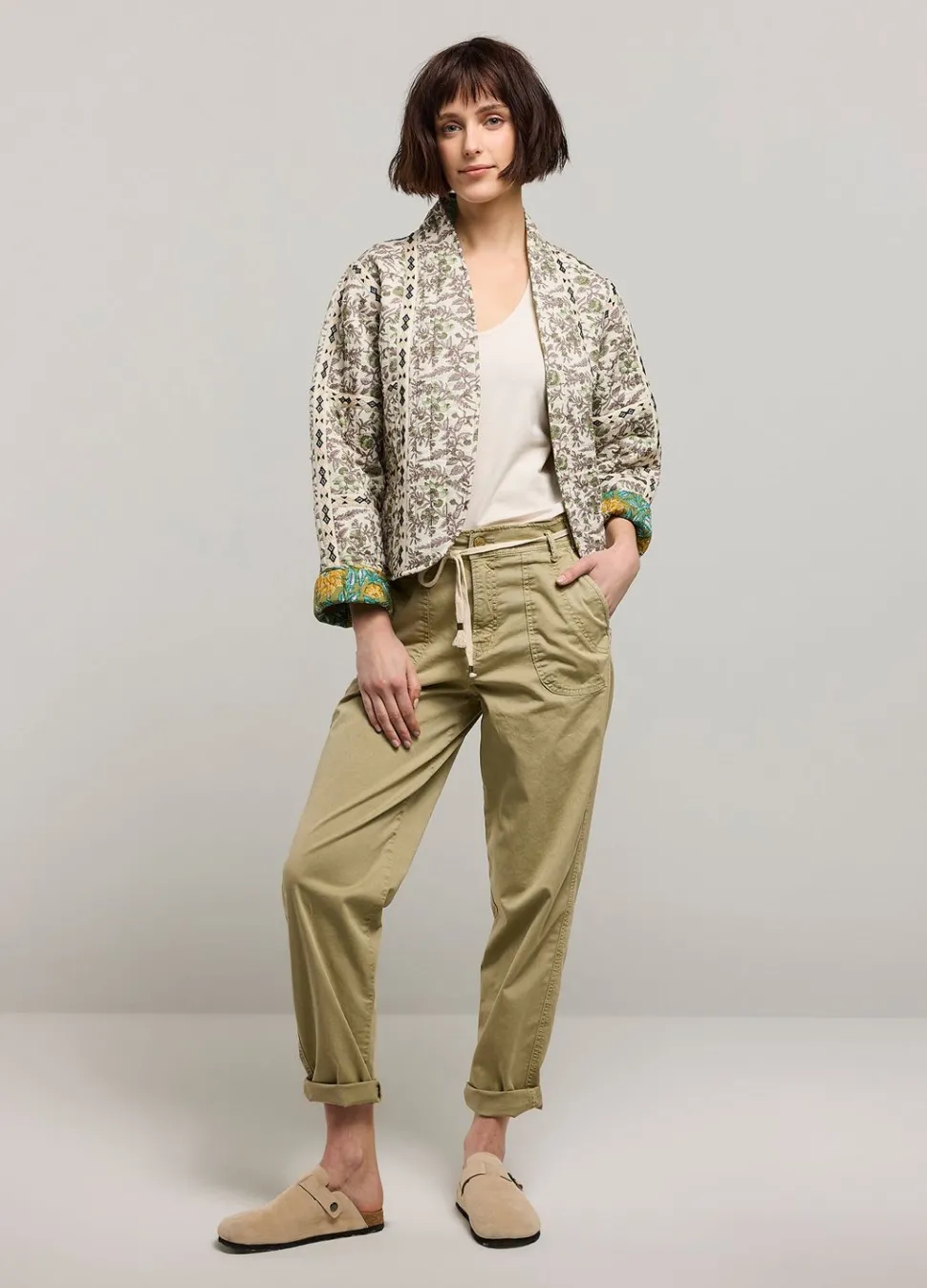 Barrel Fit Broek In Een Soepelvallende Stof En Koord In De Taille. De Broek Heeft Opgestikte Zakken Voor En Klepzakken Achter.