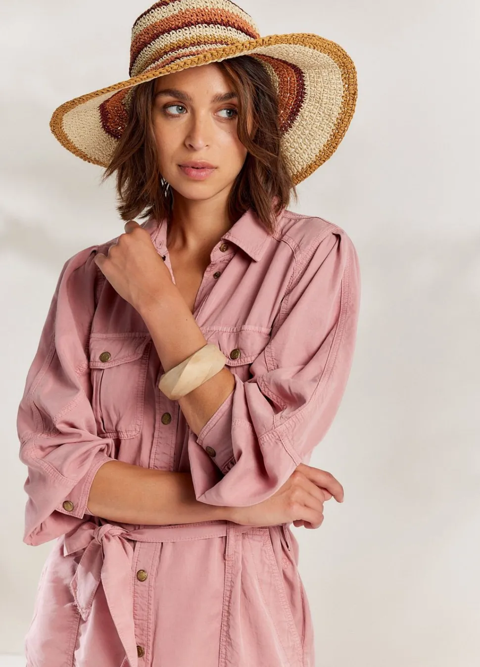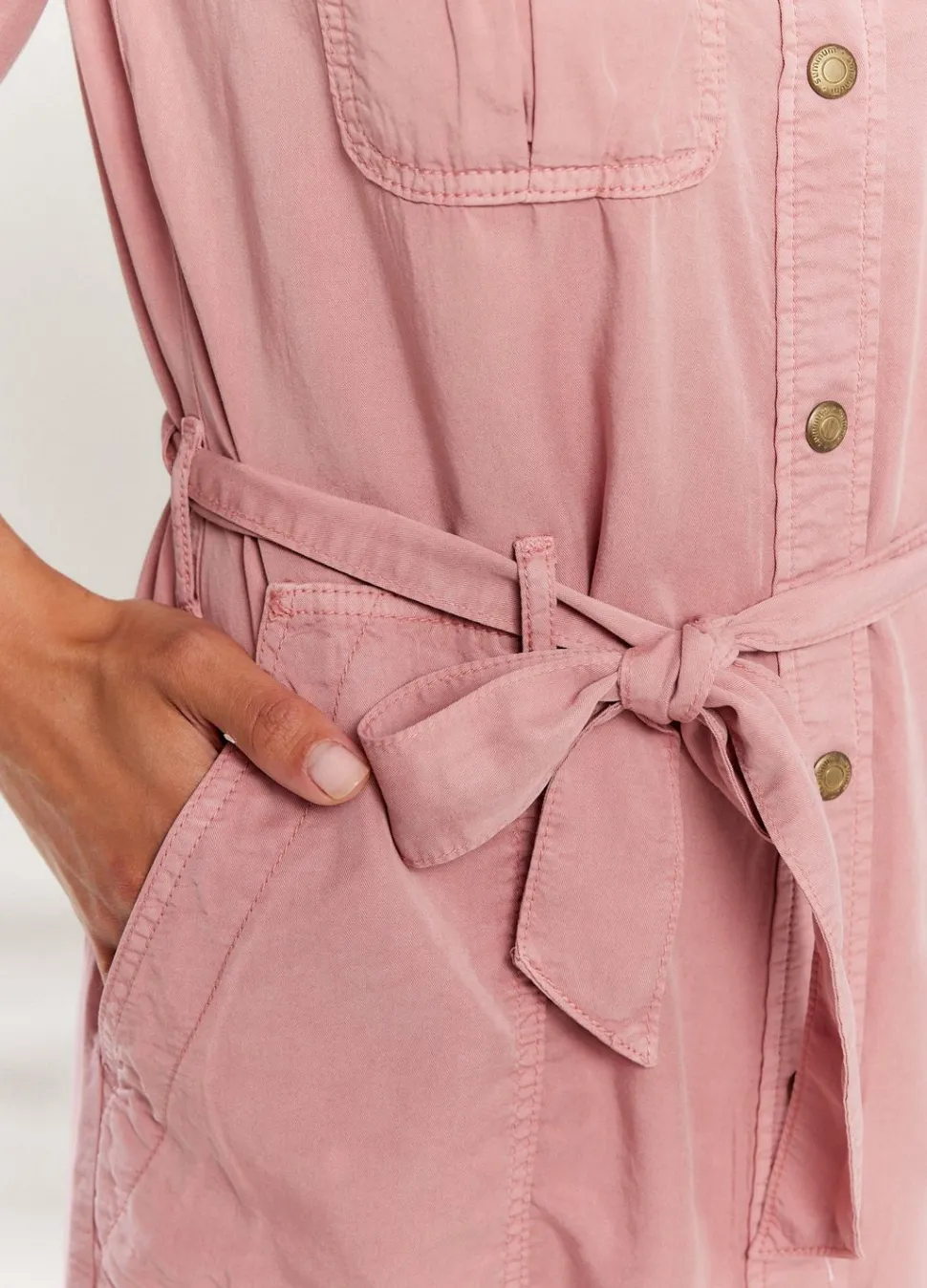 Cargojurk Met Drukknoopsluiting, Gemaakt Van Een Soepele Lyocell Stof. De Jurk Heeft Een Ceintuur In De Taille En Klepzakken Voor