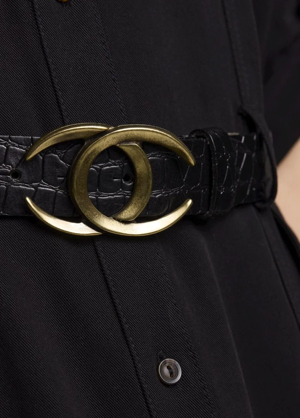 Leren Riem Met Croco-Effect En Een Platte Gesp Van Twee Open Ovalen