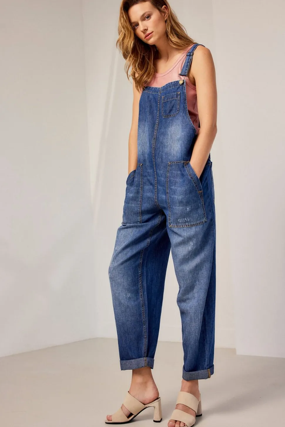 Denim Dungaree In Een Soepele, Lichte Non-Stretch Denim Kwaliteit Door De Mix Van Katoen En Linnen. De Dungaree Heeft Een Loose Fit Met Knoopsluiting Aan De Zijnaad.