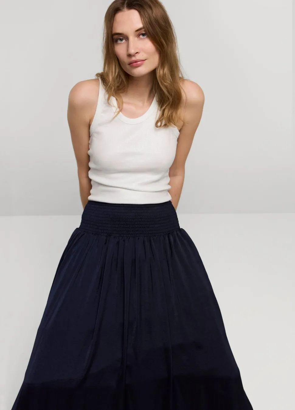 Drapey Satin Rok Uitgevoerd In Een Glanzende Satijnen Stof. De Rok Is Gevoerd En Heeft Een Gesmokte Tailleband.