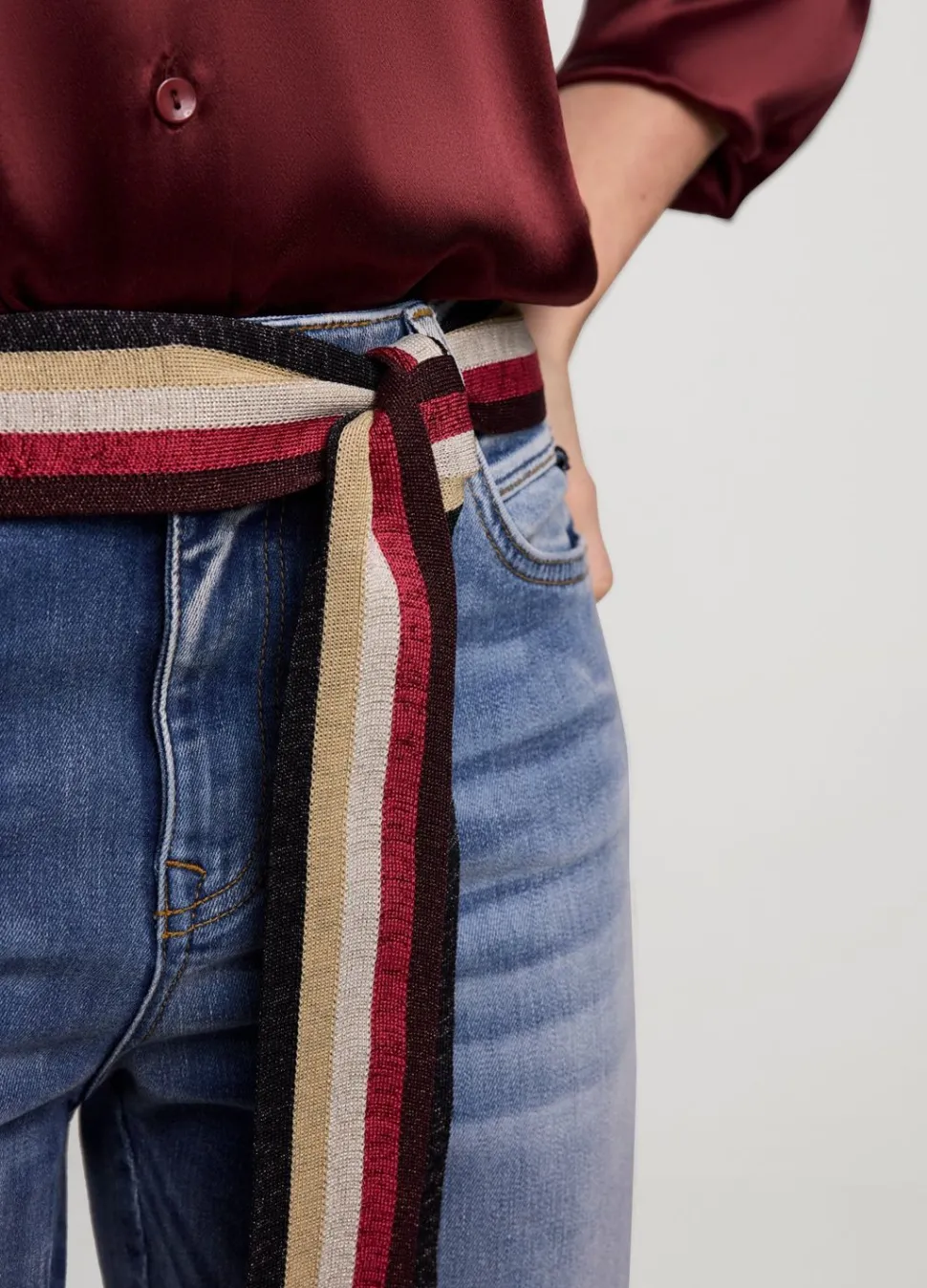 Gebreide Ceintuur Met Strepen. De Ceintuur Is Gemaakt Om Te Knopen.