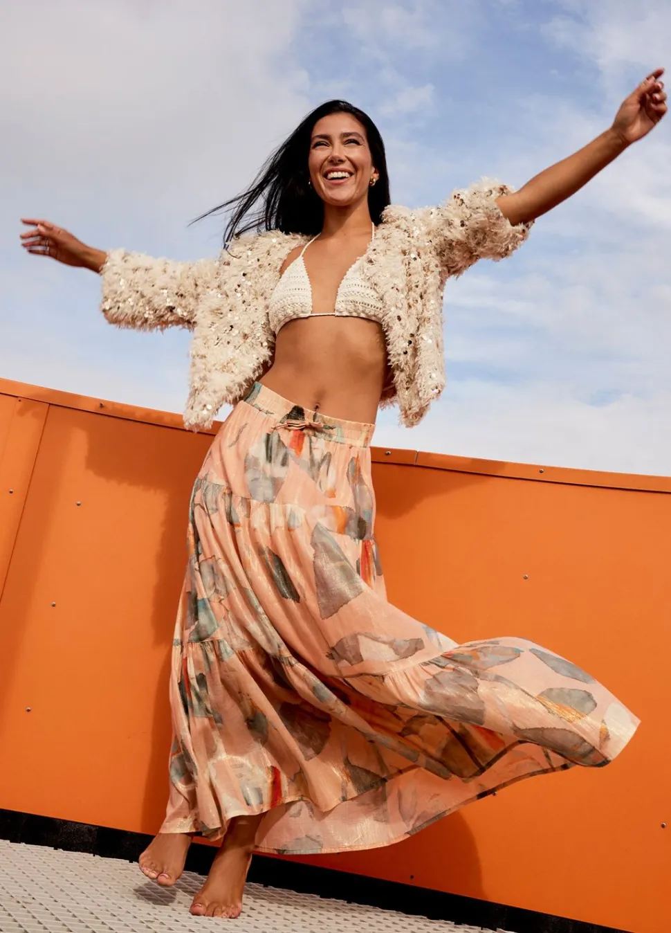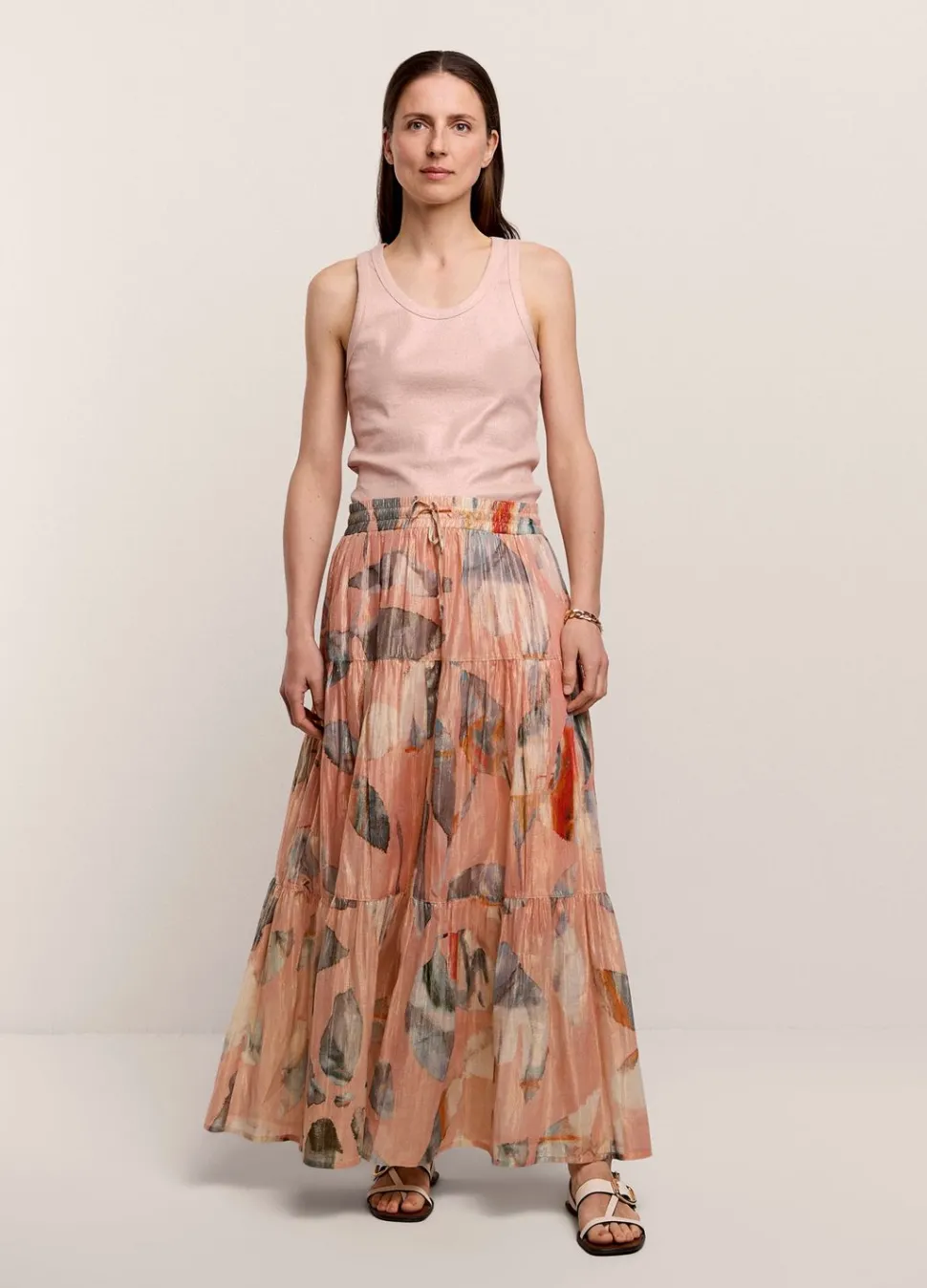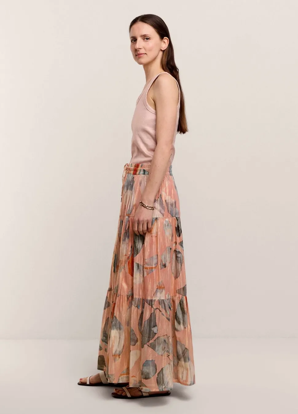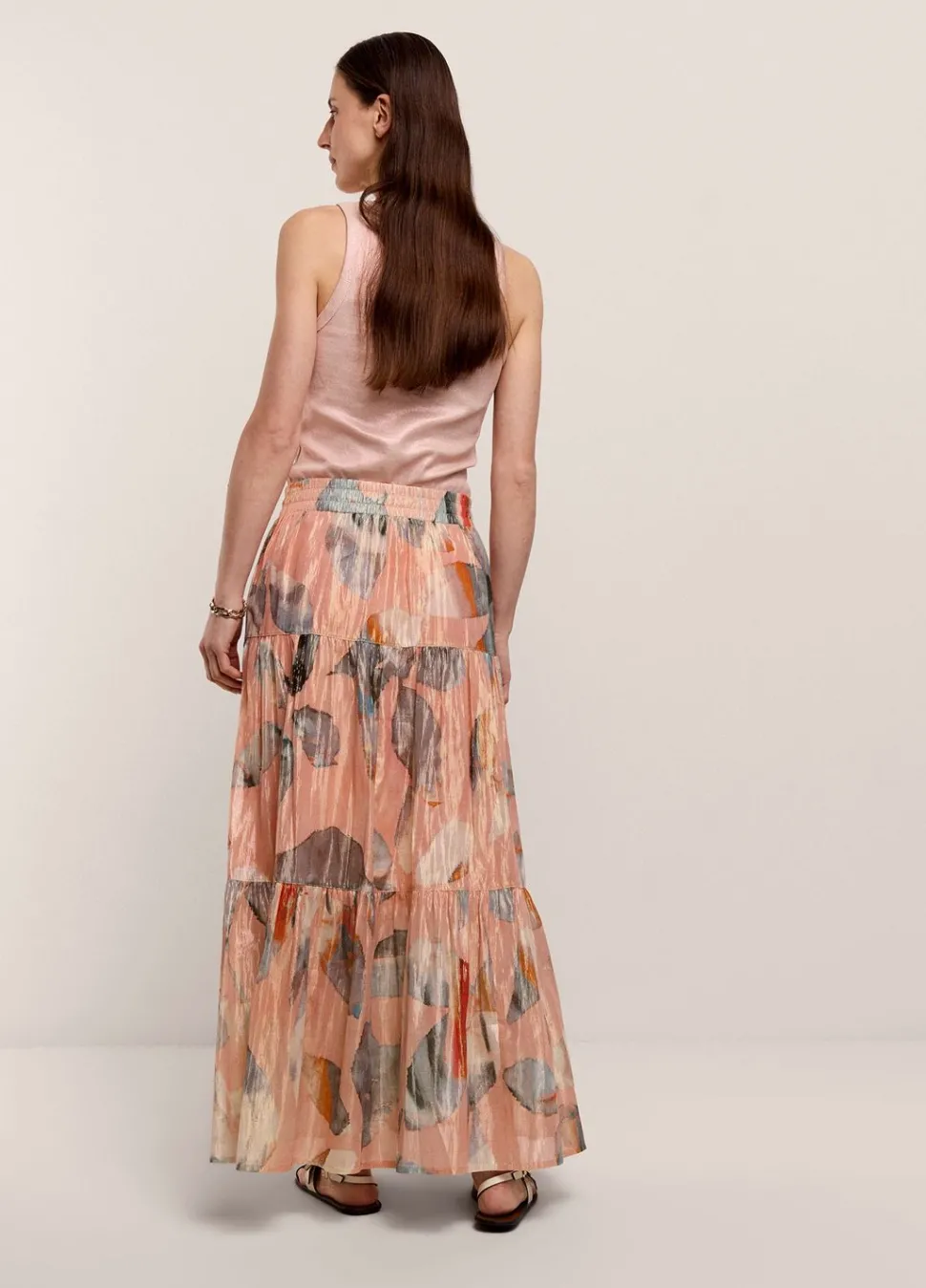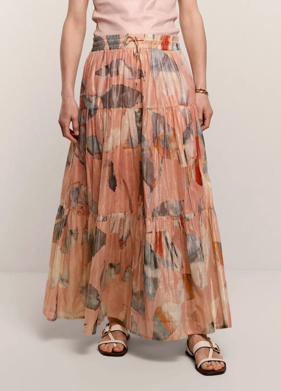 Brede Strokenrok Van Een Glinsterende, Soepele Stof Met Binnenvoering En Gemaakt In Een Glinsterende Lurex Garenmix. De Rok Heeft Een Elastische Tailleband En Een Trekkoord.