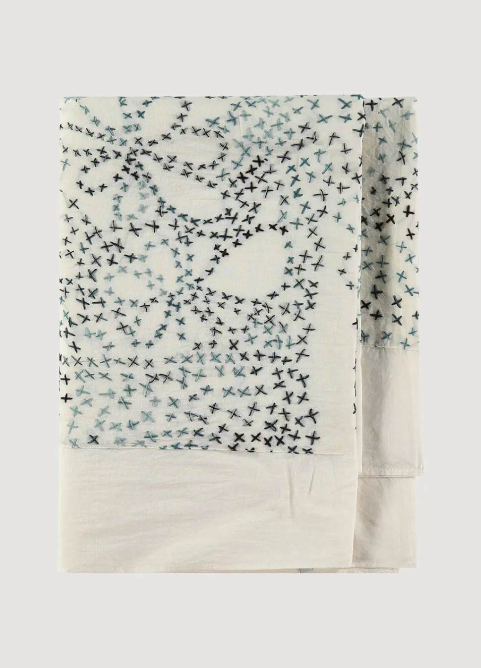 Handgeborduurde Sjaal Van Lichte Geweven Stof En Voorzien Van Kruissteekjes.