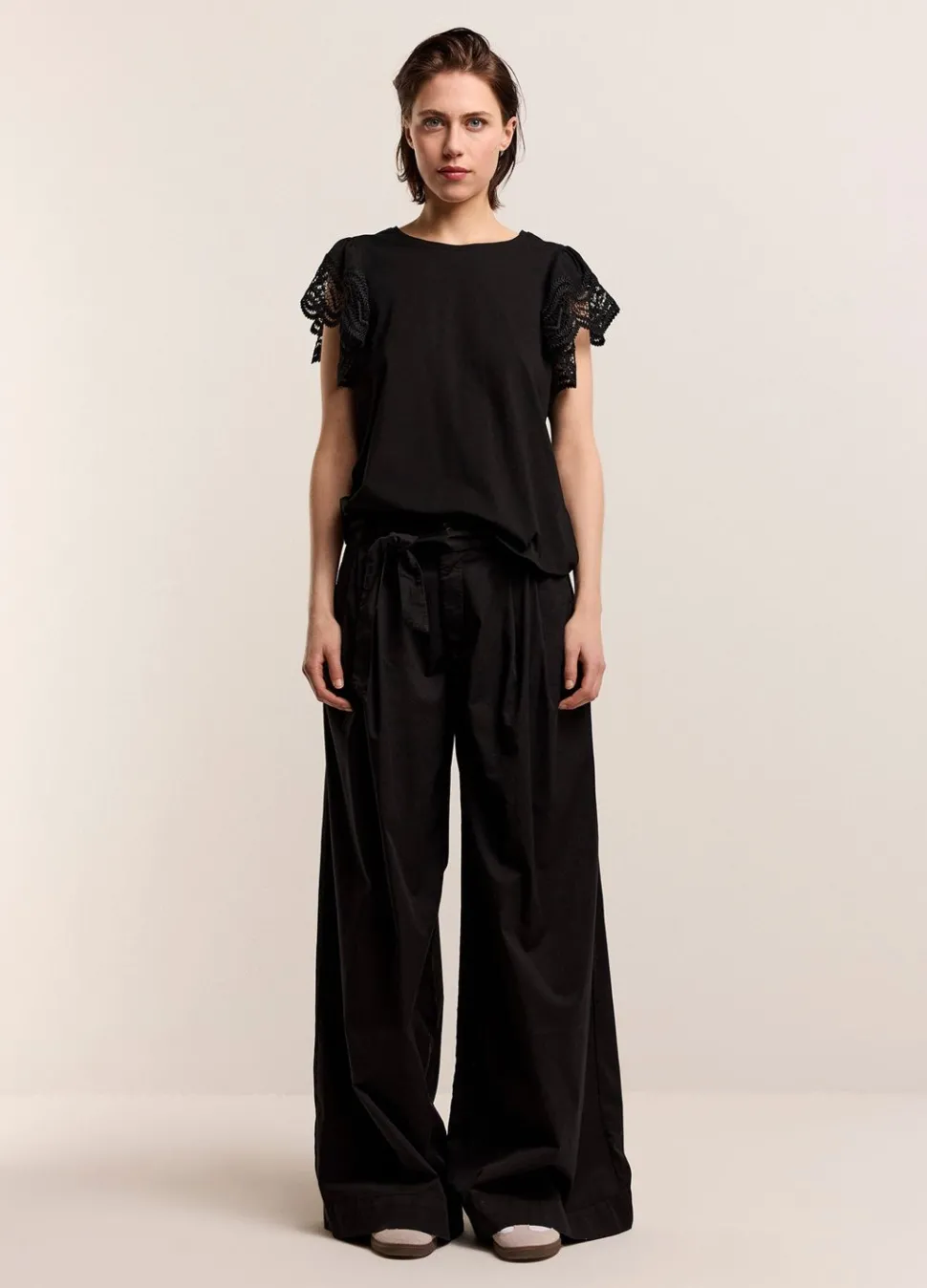 Top Met Vlindermouwtjes Afgewerkt Met Kant. De Top Heeft Een Normale Pasvorm En Is Gemaakt Van Een Rekbare Jersey Kwaliteit Stof. • Normale Pasvorm