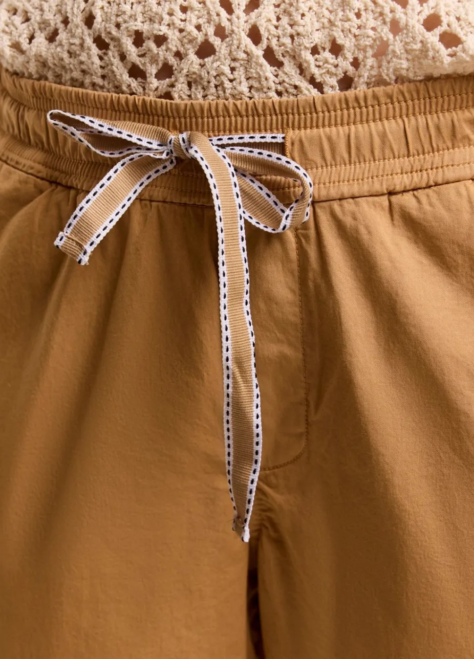 Smal Toelopende Broek Met Een Relaxte Fit, Gemaakt Van Een Zachte Stretch Stof. De Broek Heeft Opgestikte Zakken Achter En Een Elastische Tailleband Met Een Trekkoord.