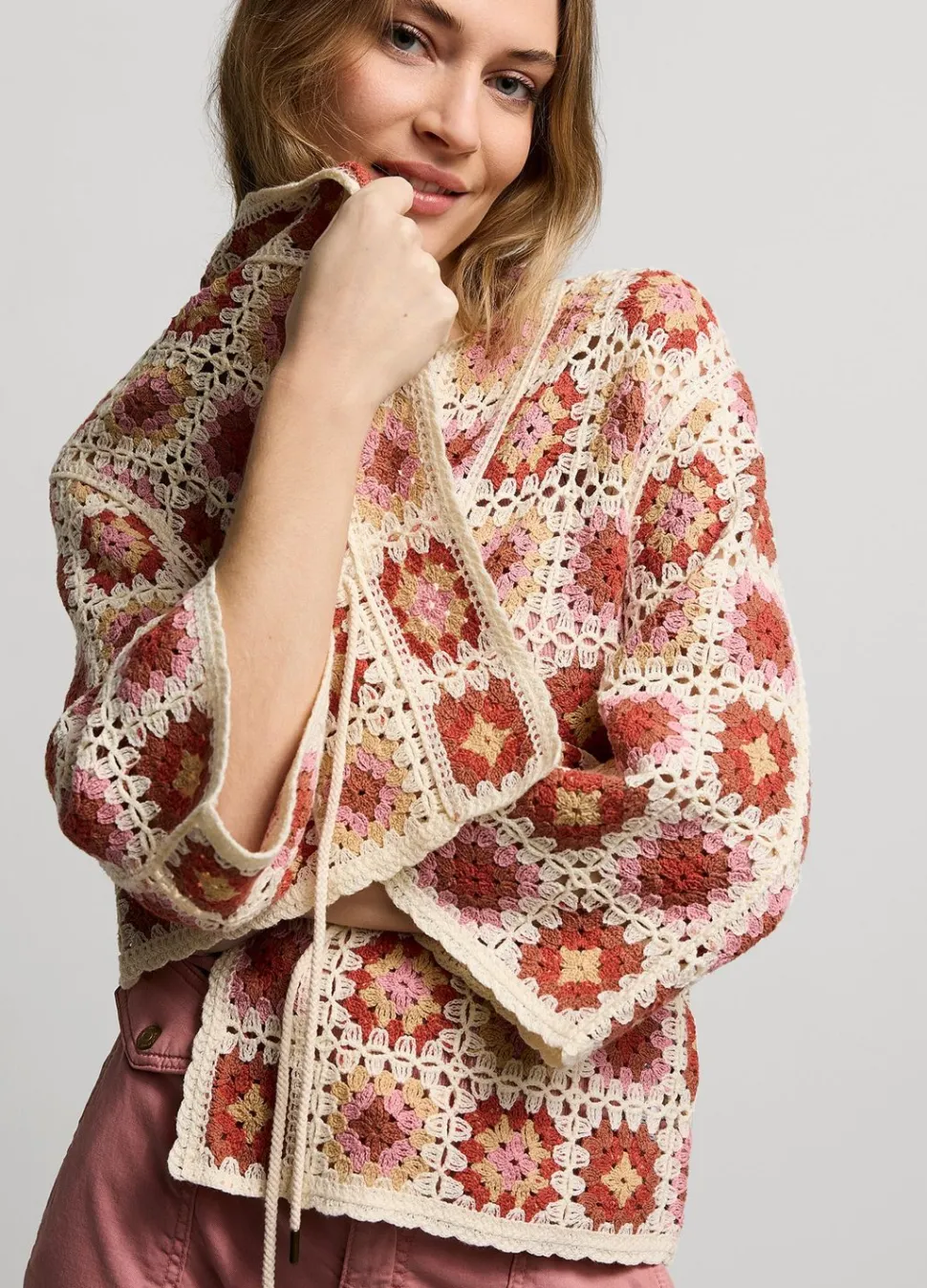 Kimonolook Jasje Met Gehaakte Uitstraling In Verschillende Patronen En Kleuren. Het Vest Heeft Een Verstelbaar Koord In De Taille En 7/8E Mouwen.