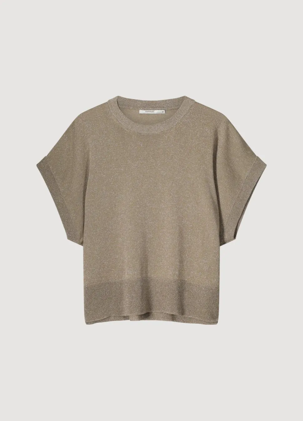 Oversized Boxy Trui Met Korte Mouw, Gebreid In Een Lurex-Viscose Mix Garen. De Trui Heeft Een Rechte Fit En Ruime Armsgaten.