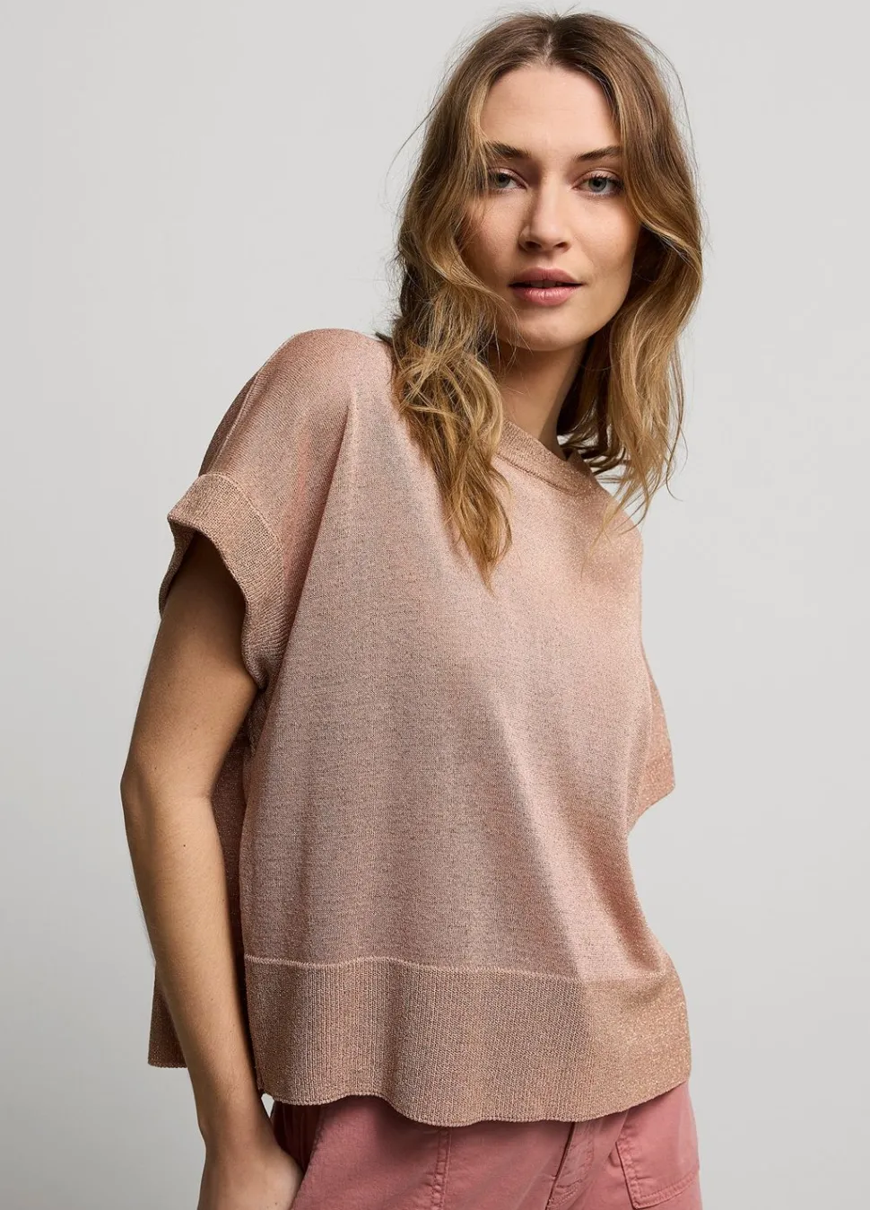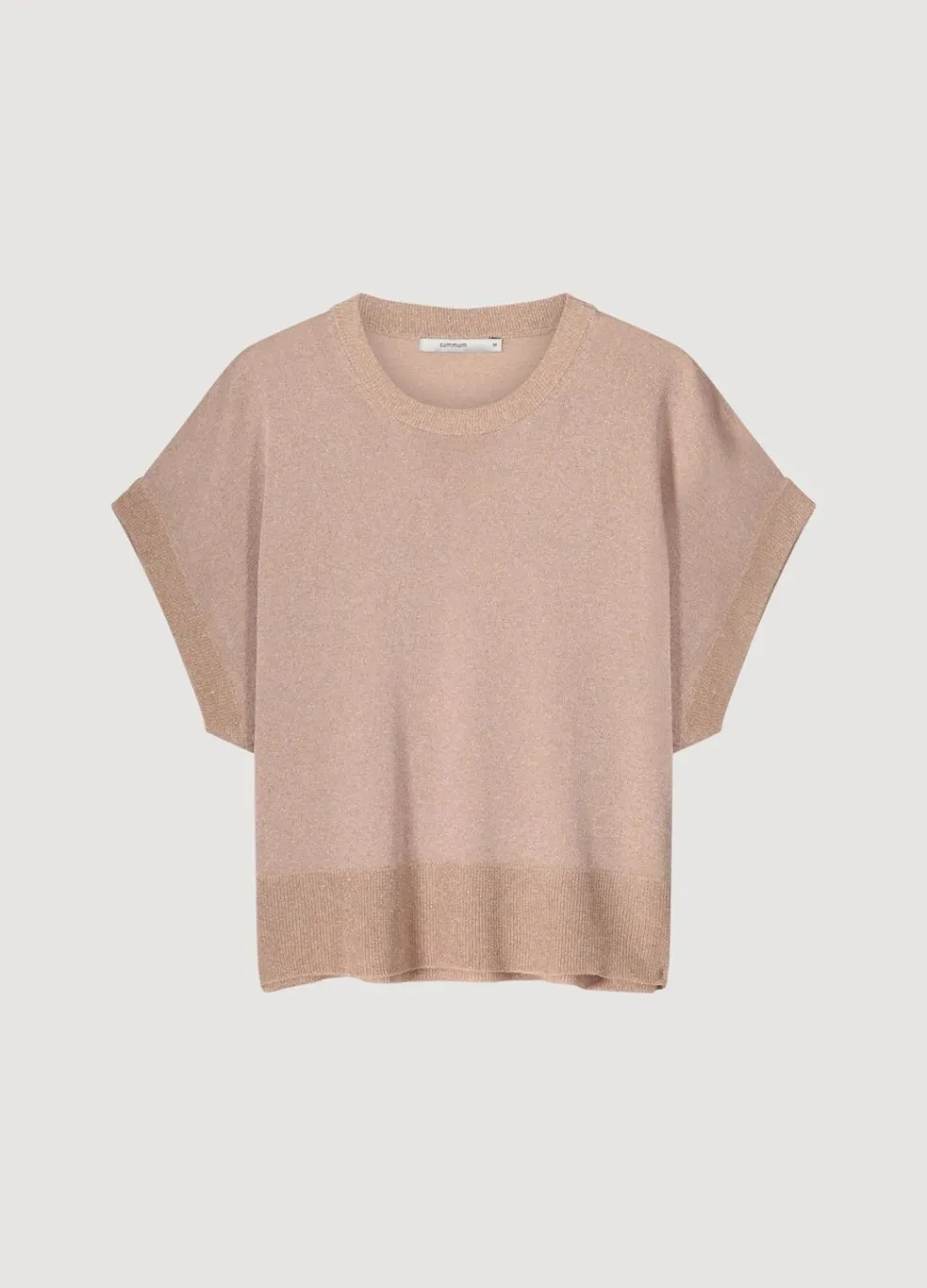 Oversized Boxy Trui Met Korte Mouw, Gebreid In Een Lurex-Viscose Mix Garen. De Trui Heeft Een Rechte Fit En Ruime Armsgaten.