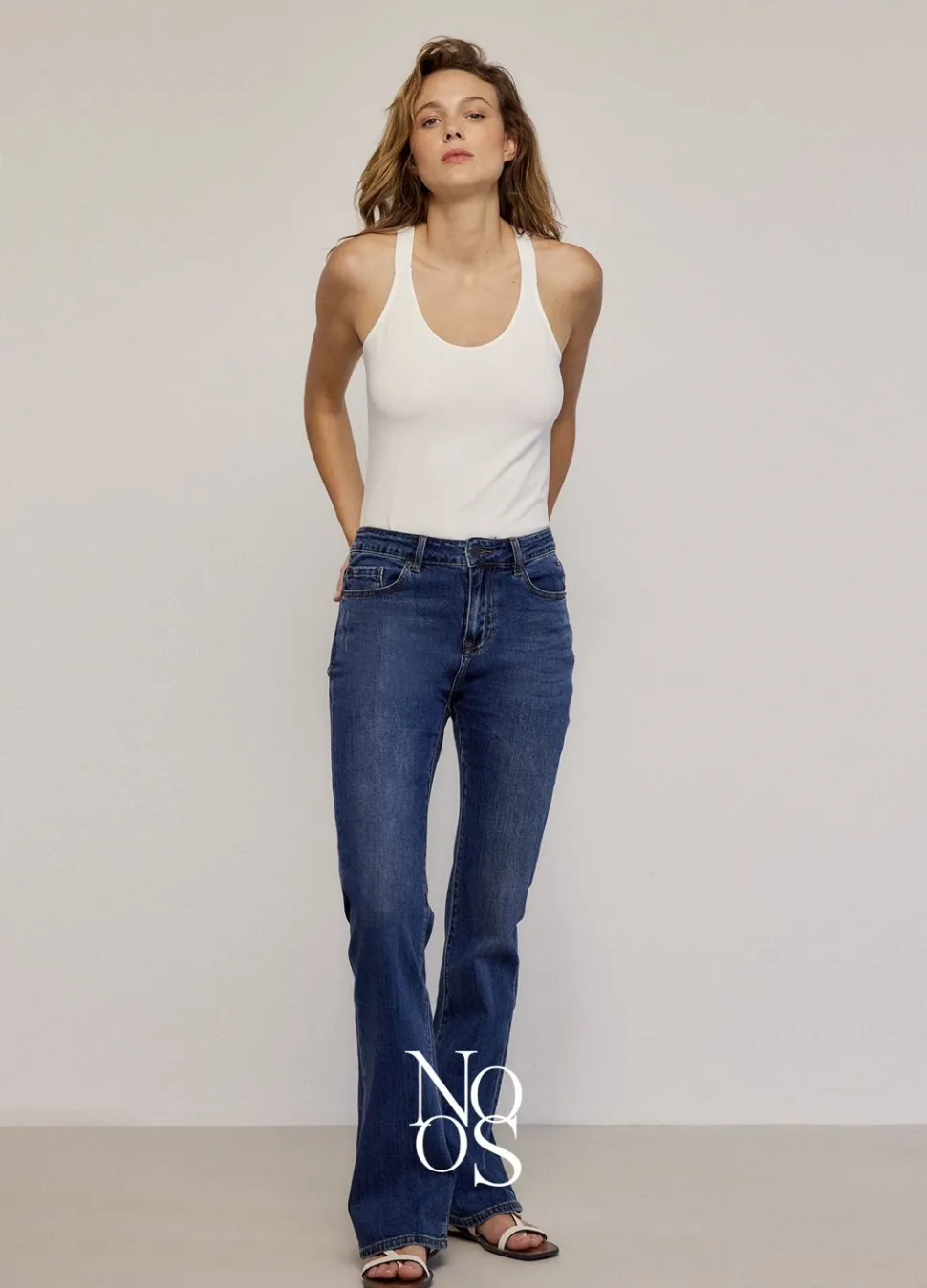 Een Luxury Basic Singlettop Met Een Ronde Hals Van Biologisch Katoen Met Op De Rug Kruisende Schouderbanden Van Een Fijne Stretchkwaliteit Met Glittergaren.