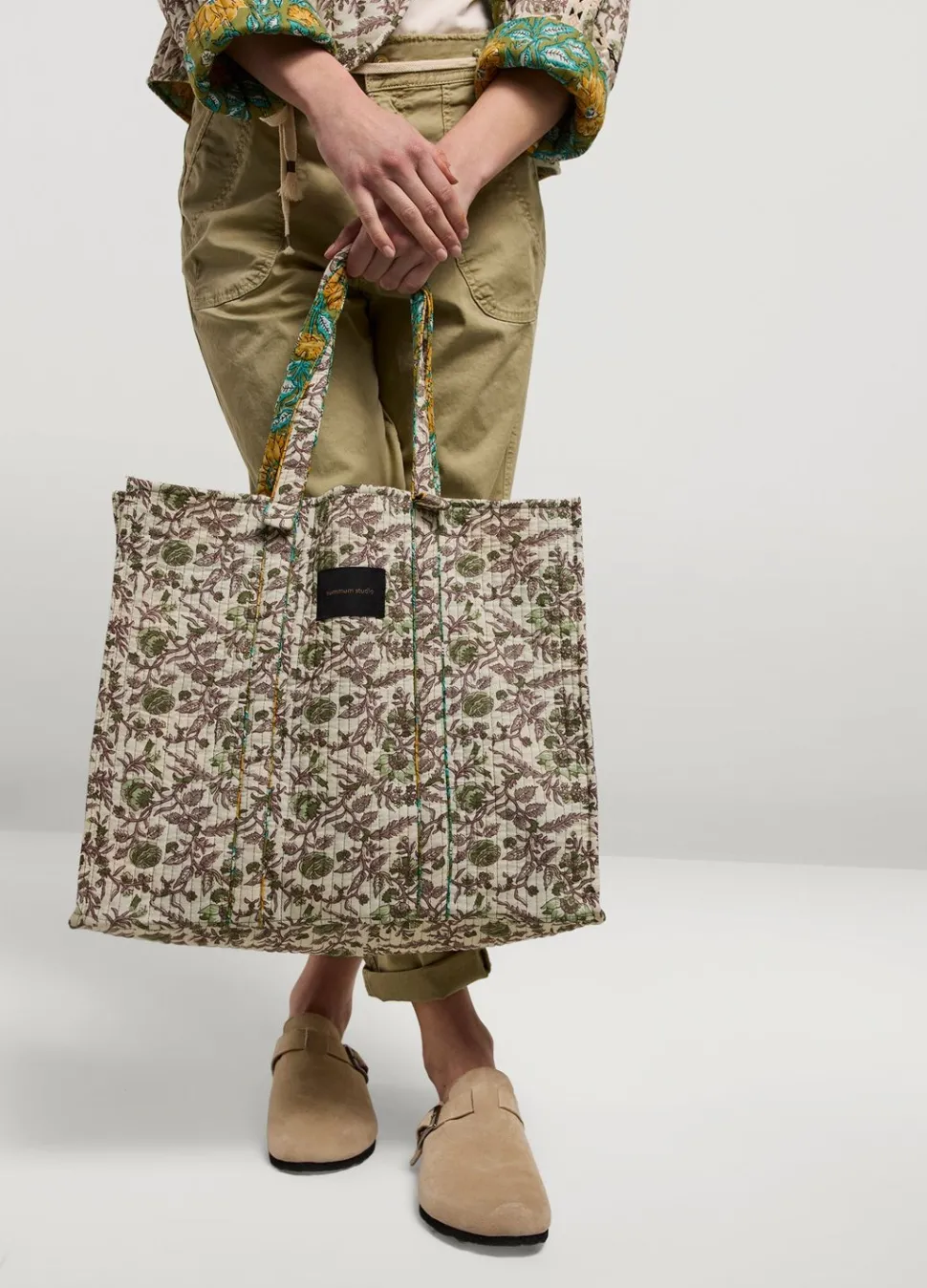 Tote Bag Gemaakt Van Stof In Verschillende Prints, Waardoor Je De Tas Binnenstebuiten Kunt Dragen. De Schoudertas Heeft Stoffen Hengsels.
