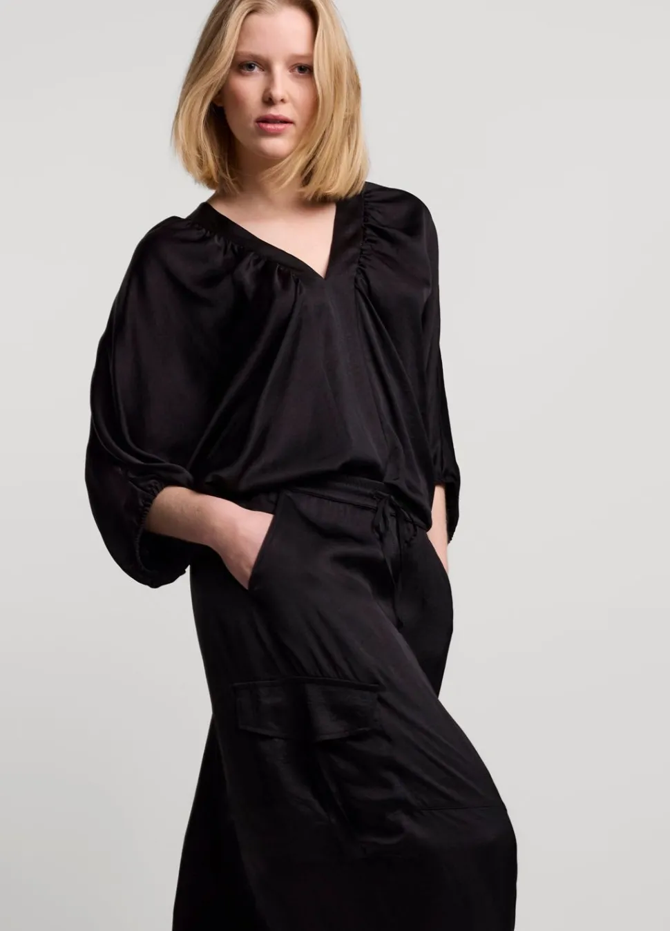 Silky Touch Cargorok Uitgevoerd In Een Glanzende Satijnen Stof. De Rok Heeft Een Tailleband Met Koord En Summum-Signature Elastiek Aan De Achterkant.
