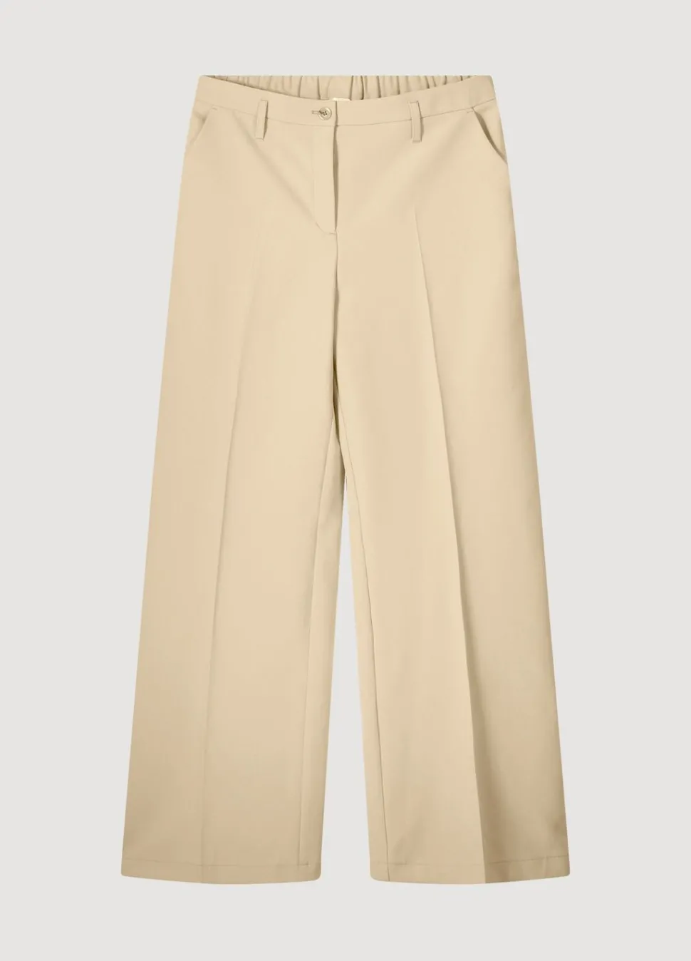 Soft Foam Broek Met Wijde Pijpen En Een Elastische Tailleband Achter. De Broek Heeft Steekzakken Voor En Strookzakken Achter.