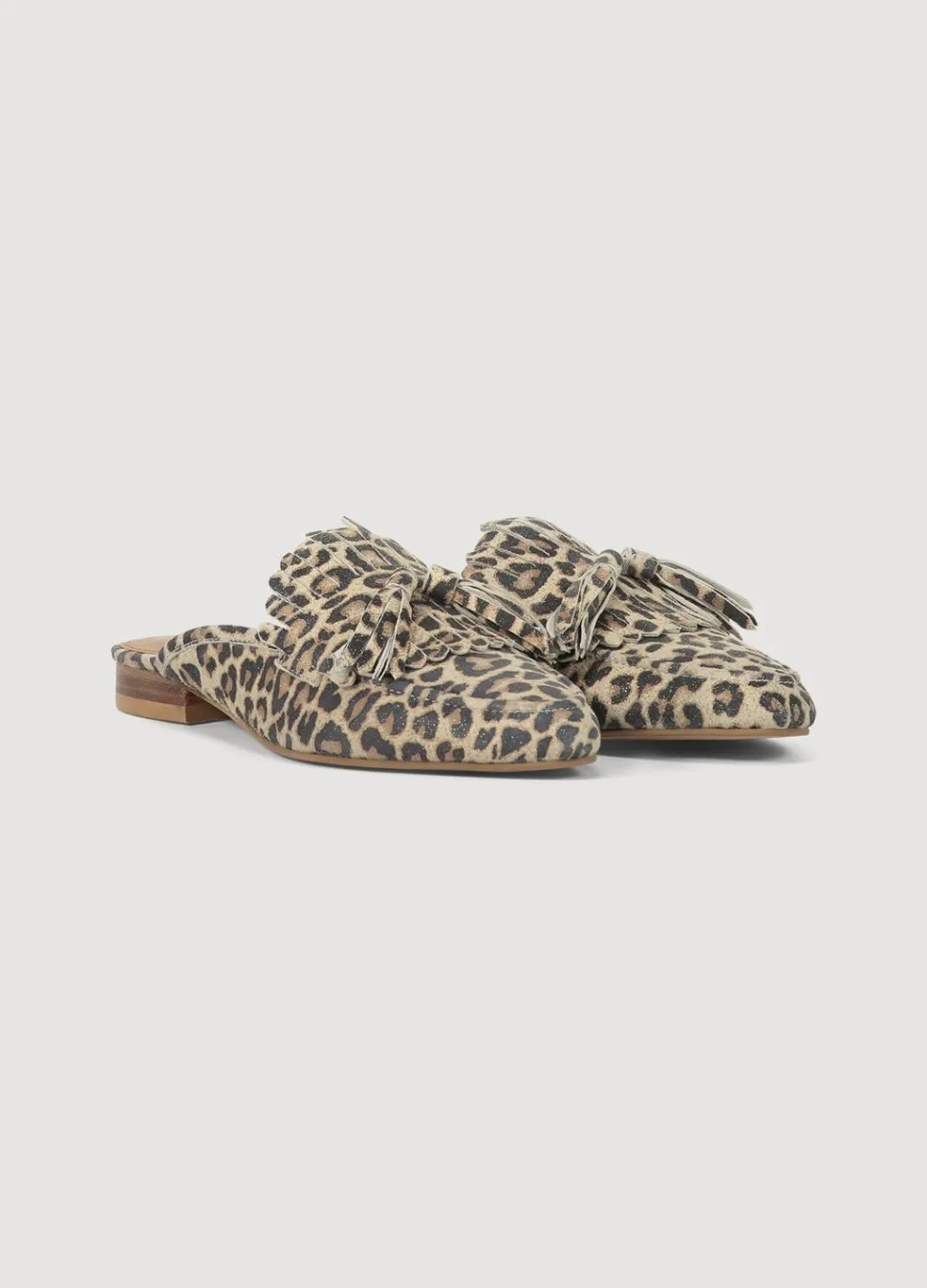 Suède Muiltje Met Kwastjes Op De Voorkant. De Muiltjes Zijn Gevoerd Met Leer En Voorzien Van Een Lage Hak Van 1,8 Cm.