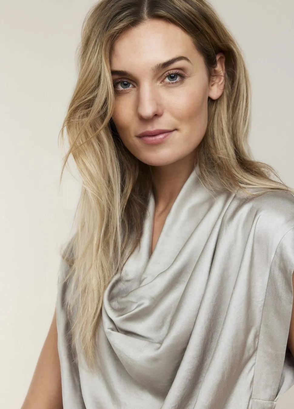 Mouwloze Top Met Mooi Gesneden Waterval Halslijn. De Top Heeft Wijde Armgaten En Is Gemaakt Van Een Soepelvallende Silky Touch Stof.