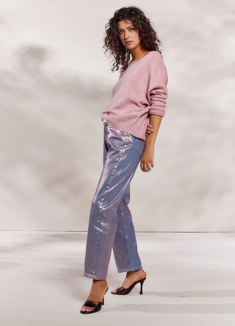 Zoe Jeans Met Rechte Pijpen In Een Lichte Stretch Denim Kwaliteit En Voorzien Van Een Foil Coating. De Broek Heeft Een Mid Waist En Valt Relaxed Op De Heupen
