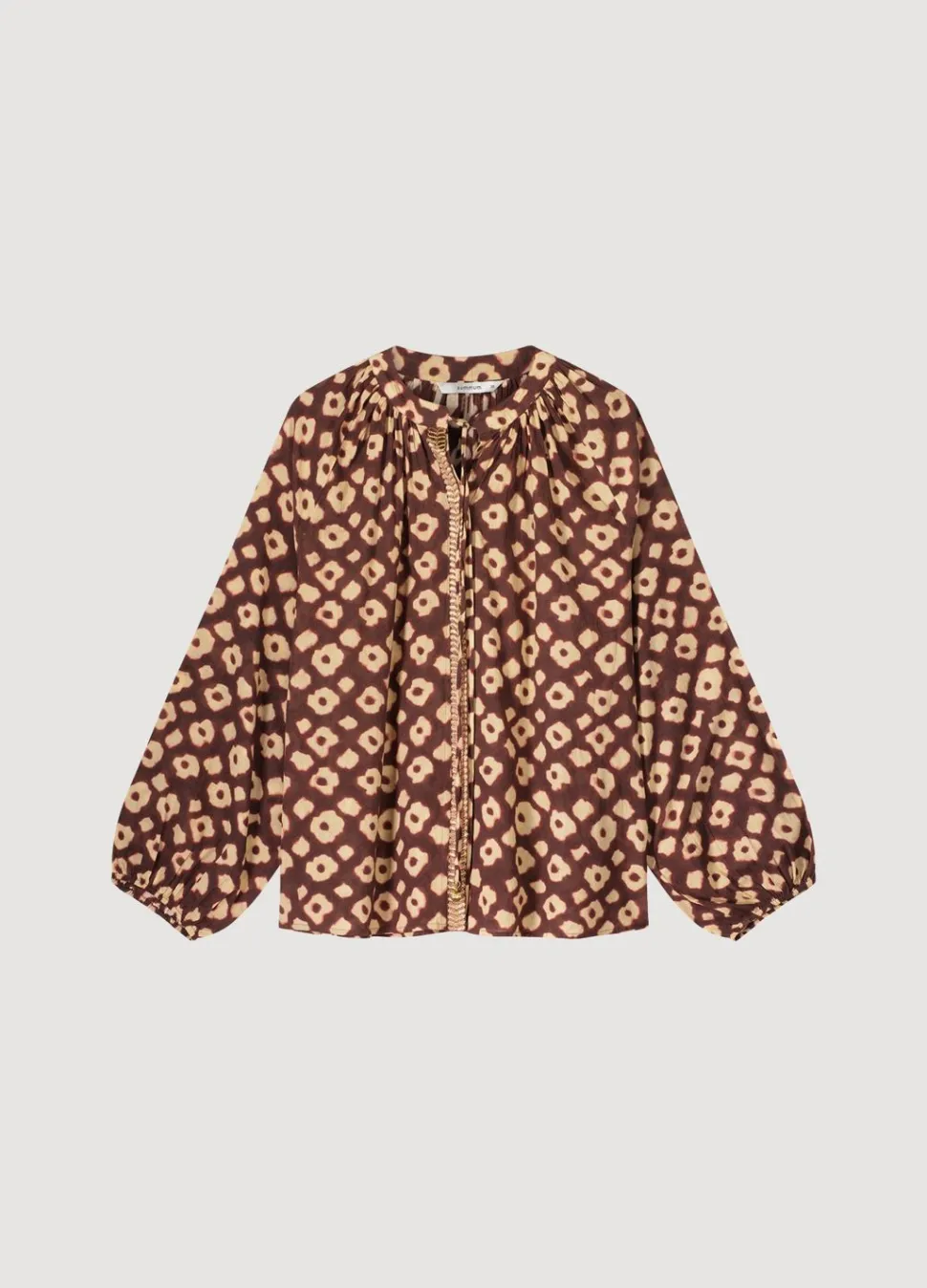 Ruimvallende Blouse In Een Zachte Katoenen Stof Met Bloemenprint. De Blouse Heeft Een Ronde Hals Met Split, Knoopsluiting En Ballonmouwen.