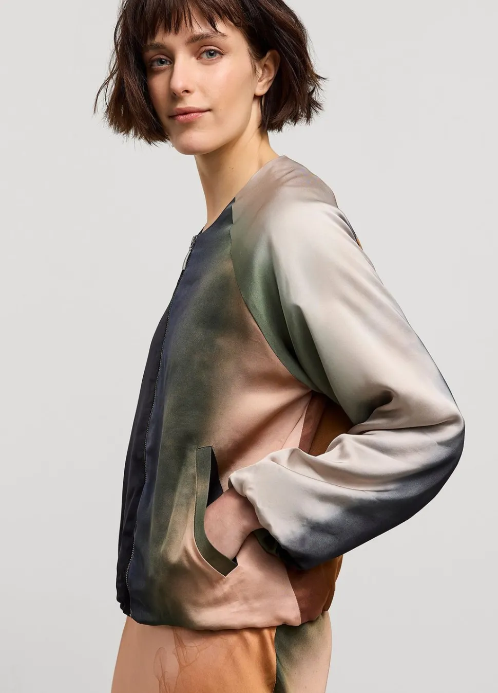 Gevoerd Bomberjack Met Ritssluiting En Verstelbaar Elastisch Koord In De Zoom Aan De Onderkant En In De Mouwen. De Jas Heeft Een Rechte Snit En Door De Wikkelkeurige Print Is Ieder Jack Uniek.