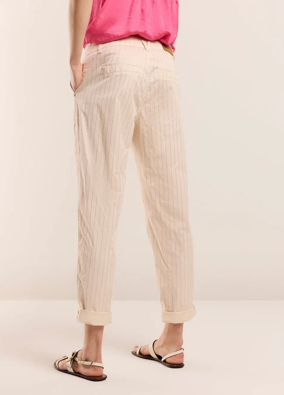 Loose Fit Streepjesbroek In Een Fijne Stretch Twill Kwaliteit. De Broek Heeft Toelopende Pijpen En Doorgestikte Zakken Aan De Voorkant.