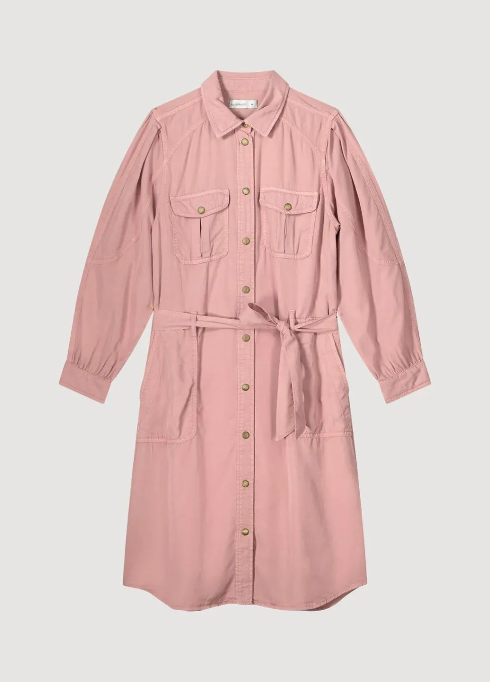 Cargojurk Met Drukknoopsluiting, Gemaakt Van Een Soepele Lyocell Stof. De Jurk Heeft Een Ceintuur In De Taille En Klepzakken Voor