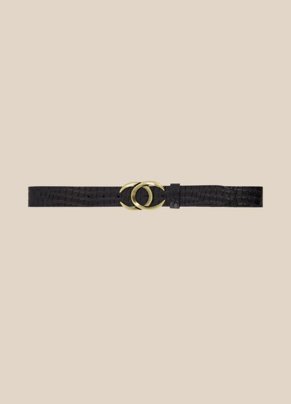 Leren Riem Met Croco-Effect En Een Platte Gesp Van Twee Open Ovalen
