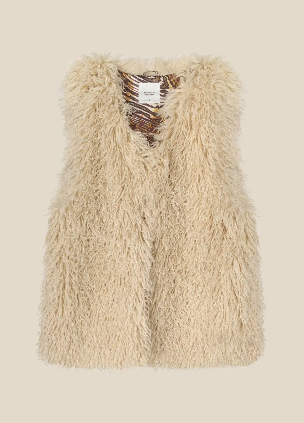 Gilet Faux Fur In Een Vintage Schapenvachtlook. Het Gilet Van 100% Polyester Heeft Een Relaxte Pasvorm Is Gevoerd Met Een Kleurrijke Stof.