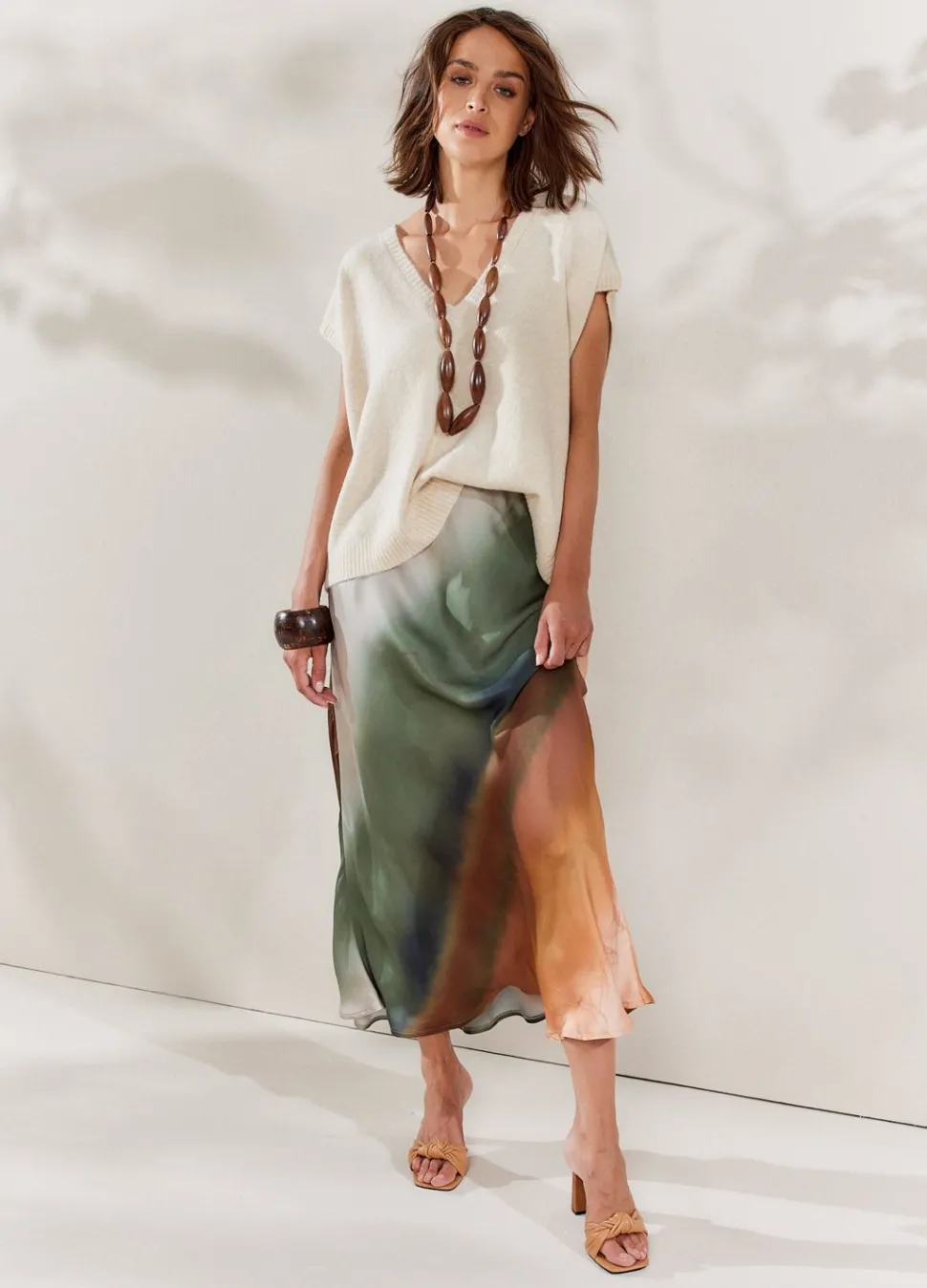 Halflange Rok Met Faded Print Gemaakt Van Soepele Viscose En Een Elastische Tailleband. De Geweven Stof Is Schuin Verwerkt, Waardoor De Rok Het Lichaam Volgt. Door De Willekeurige Print Is Iedere Rok Uniek.