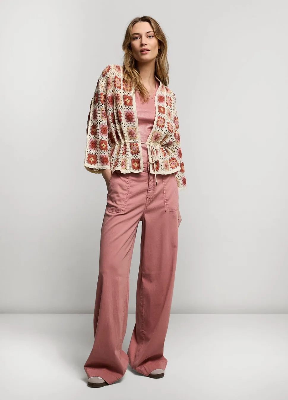 Kimonolook Jasje Met Gehaakte Uitstraling In Verschillende Patronen En Kleuren. Het Vest Heeft Een Verstelbaar Koord In De Taille En 7/8E Mouwen.