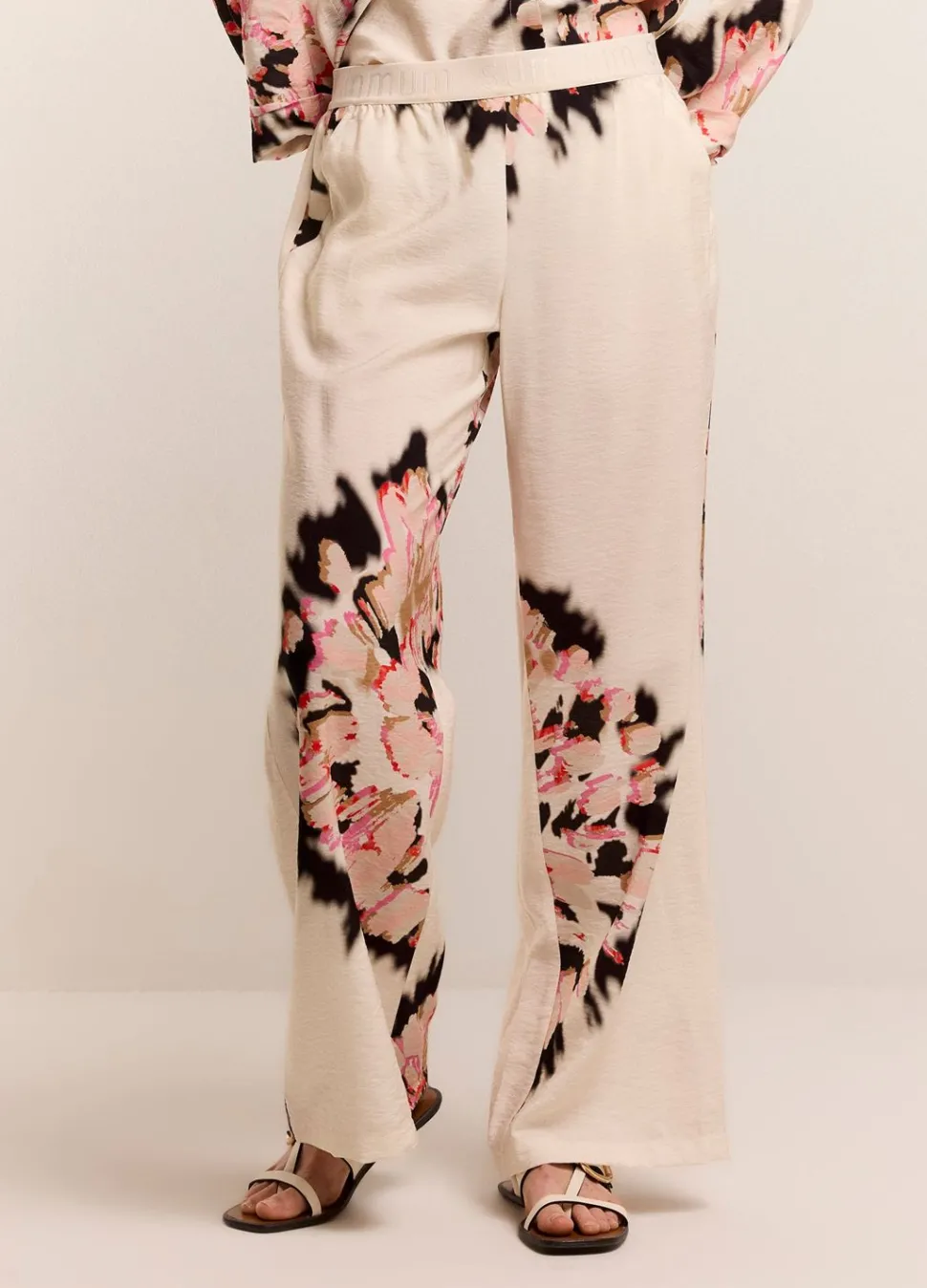 Soepelvallende Lange Broek Met Rechte Pijp En Summum Elastiek In De Taille. Door De Willekeurige Print Is Iedere Broek Uniek.