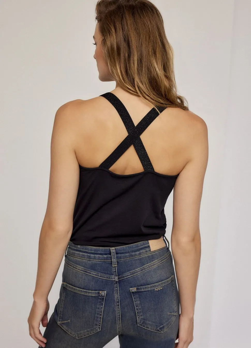 Summum Woman Luxury Basic Singlettop Met Gekruiste Schouderbanden|Vrouwen Tops & T-Shirts
