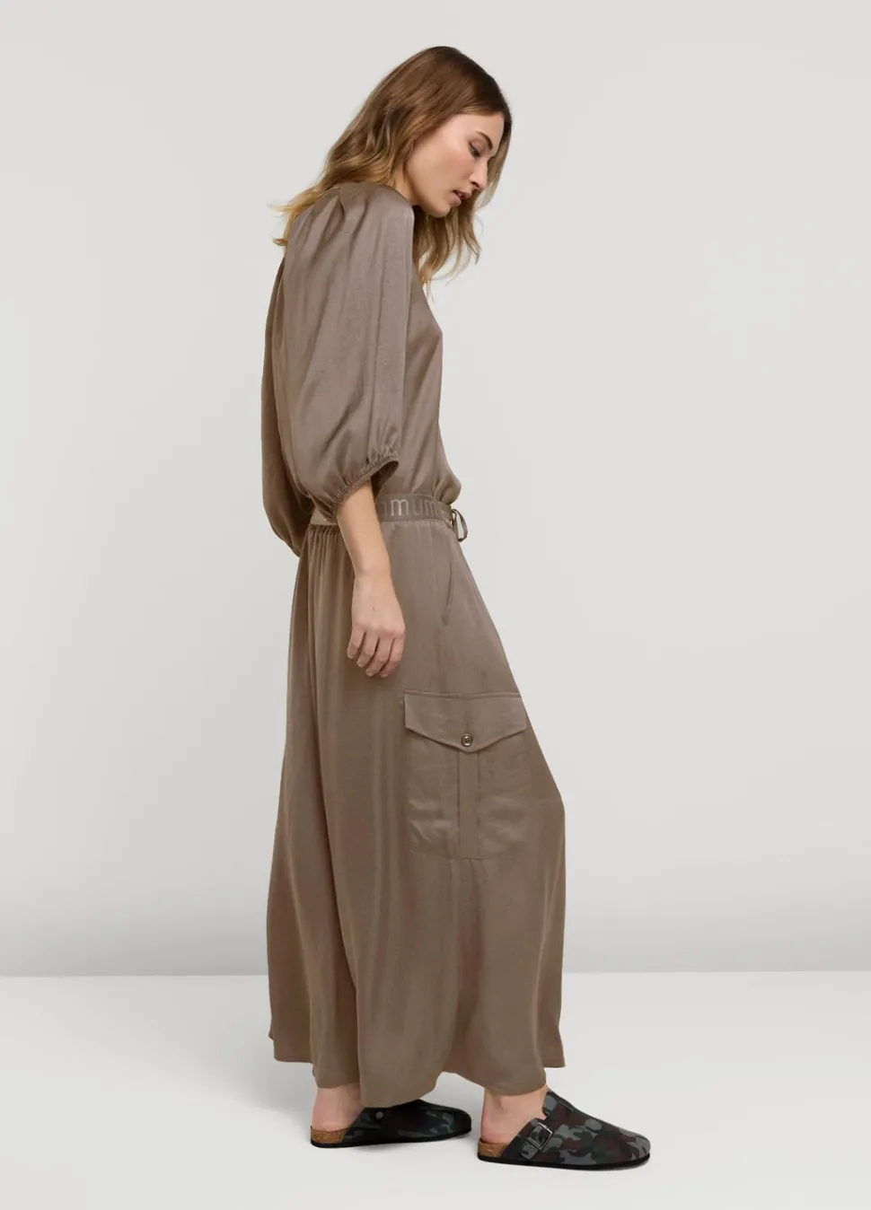 Satijnen Top Met Iets Wijde Korte Raglanmouwtjes Met Elastische Boorden. De Top Heeft Een V-Hals En Elastische Boord Aan De Onderkant.