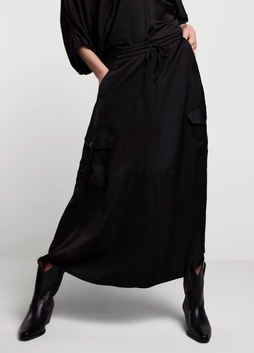Silky Touch Cargorok Uitgevoerd In Een Glanzende Satijnen Stof. De Rok Heeft Een Tailleband Met Koord En Summum-Signature Elastiek Aan De Achterkant.