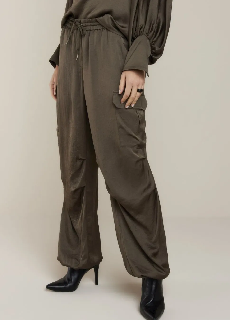 Silky Touch Cargobroek Met Een Normale Taille Voorzien Van Een Koordje En Summum Elastiek Aan De Achterkant. De Stoere Cargobroek Heeft Opgestikte Zakken Met Klep Op De Benen En Is Voorzien Van Elastiek Aan De Onderkant Van De Pijpen.