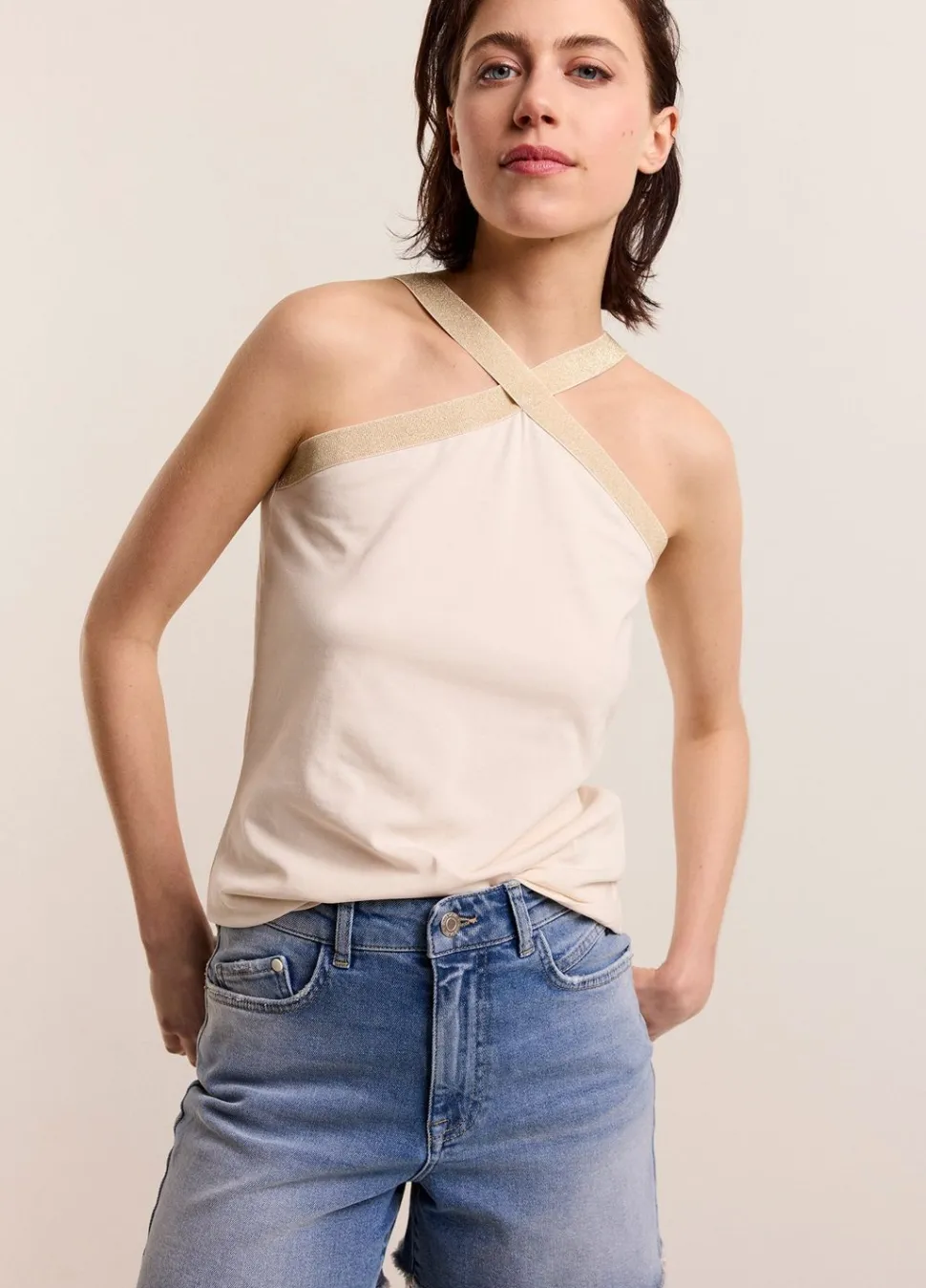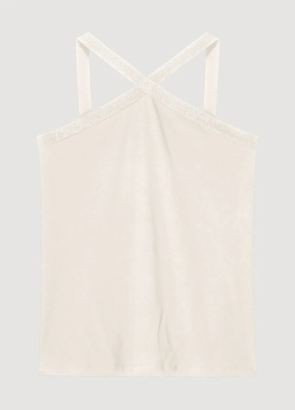Singlet Met Gekruiste Halslijn Afgewerkt Met Glitterelastiek. De Top Heeft Een Aangesloten Pasvorm En Is Gemaakt Van Biologisch Jerseykatoen.