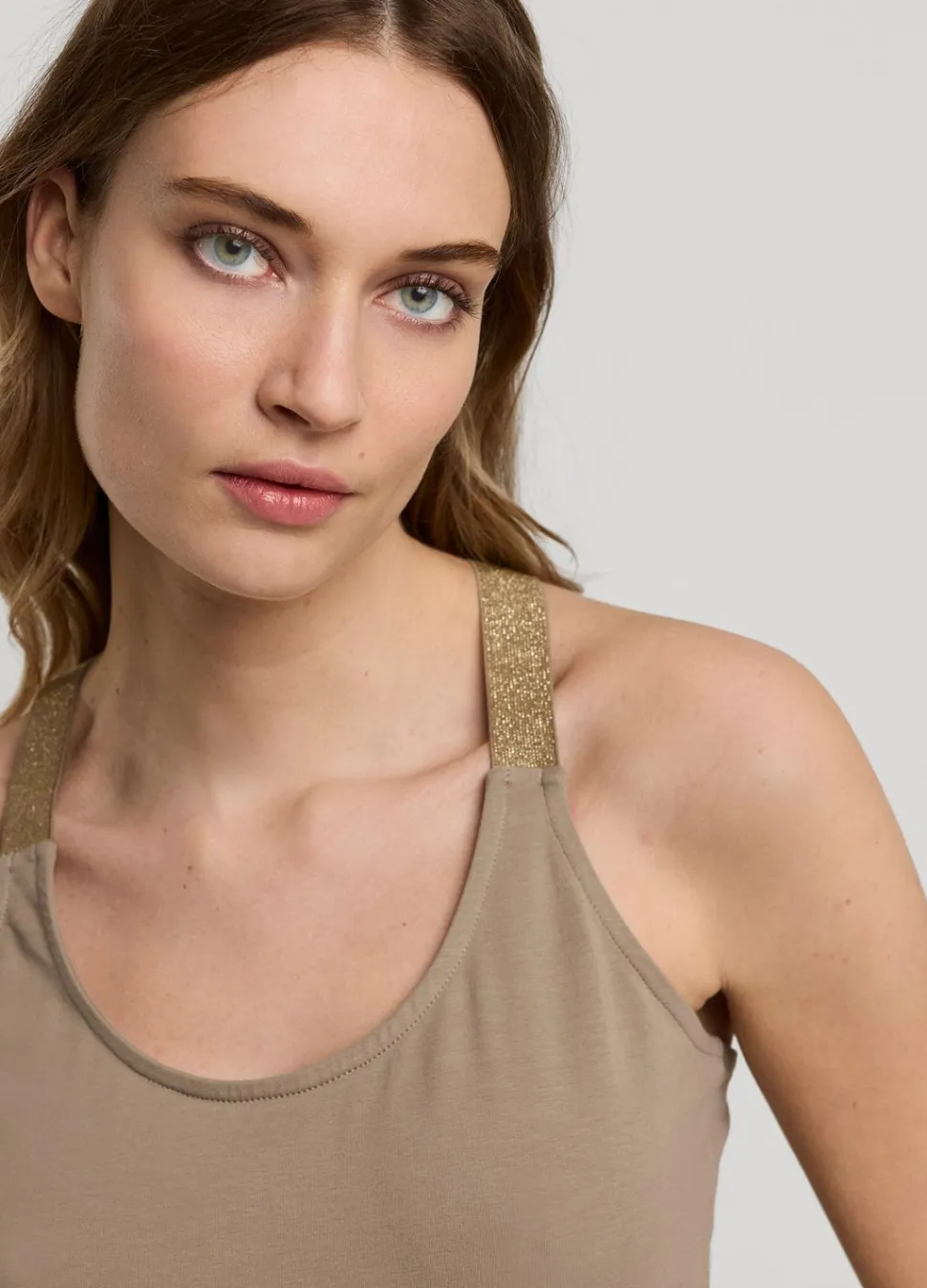 Klassiek Hemdje Met Glitterbandjes Dat Aan Beide Kanten Gedragen Kan Worden. Het Singlet Is Gemaakt Van Stretchkatoen En Heeft Een Slim Fit Pasvorm.