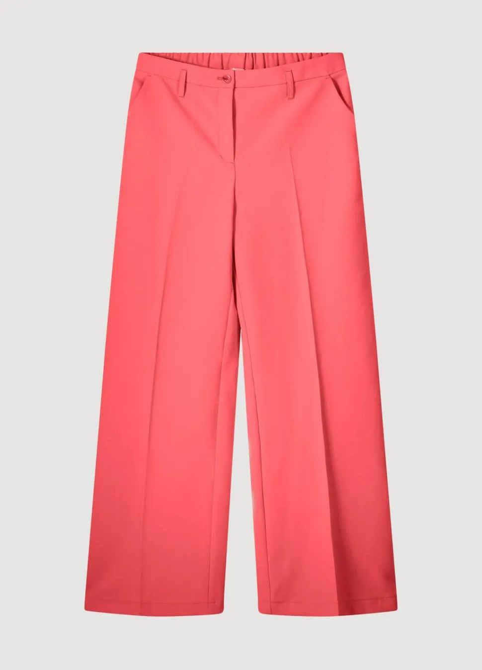 Soft Foam Broek Met Wijde Pijpen En Een Elastische Tailleband Achter. De Broek Heeft Steekzakken Voor En Strookzakken Achter.