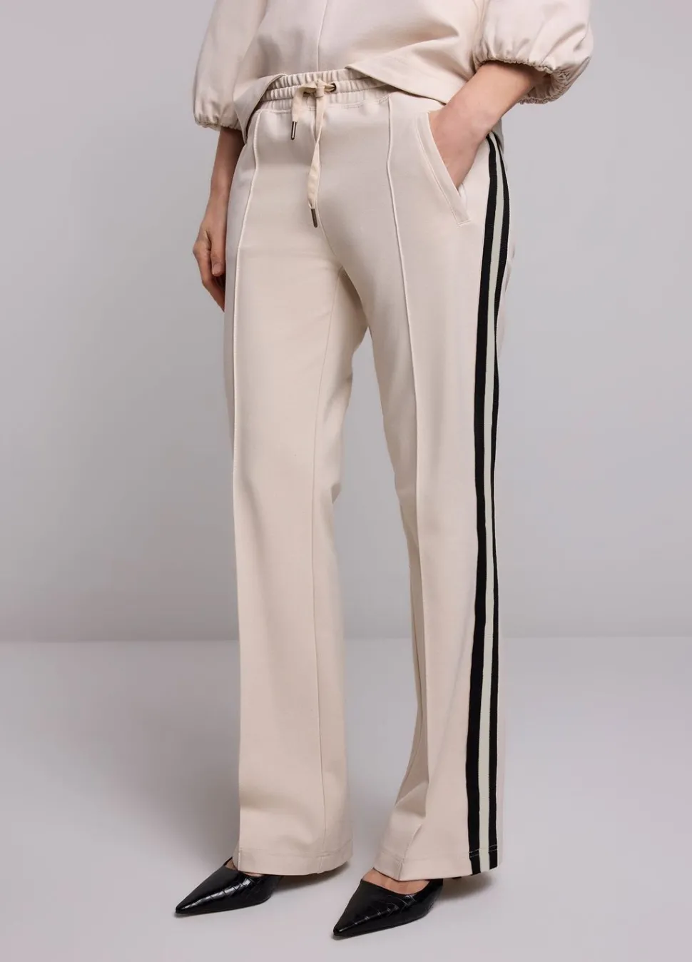 Sportieve Broek Met Rechte Pijpen Met Een Contrasterende Tape Op De Zijnaad. De Broek Heeft Een Elastische Taille Met Koord En Schuine Strookzakken Met Rits Voor.