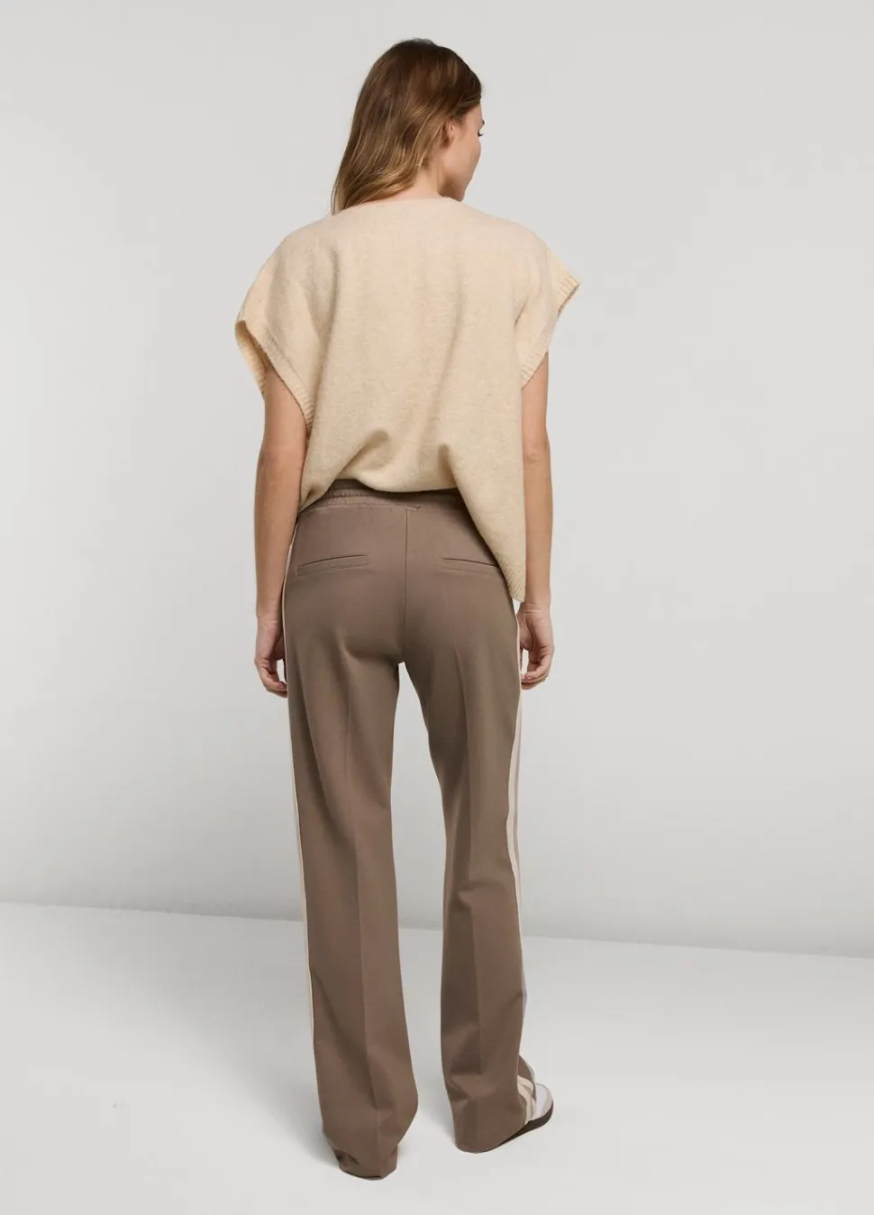 Sportieve Broek Met Rechte Pijpen Met Een Contrasterende Tape Op De Zijnaad. De Broek Heeft Een Elastische Taille Met Koord En Schuine Strookzakken Met Rits Voor.