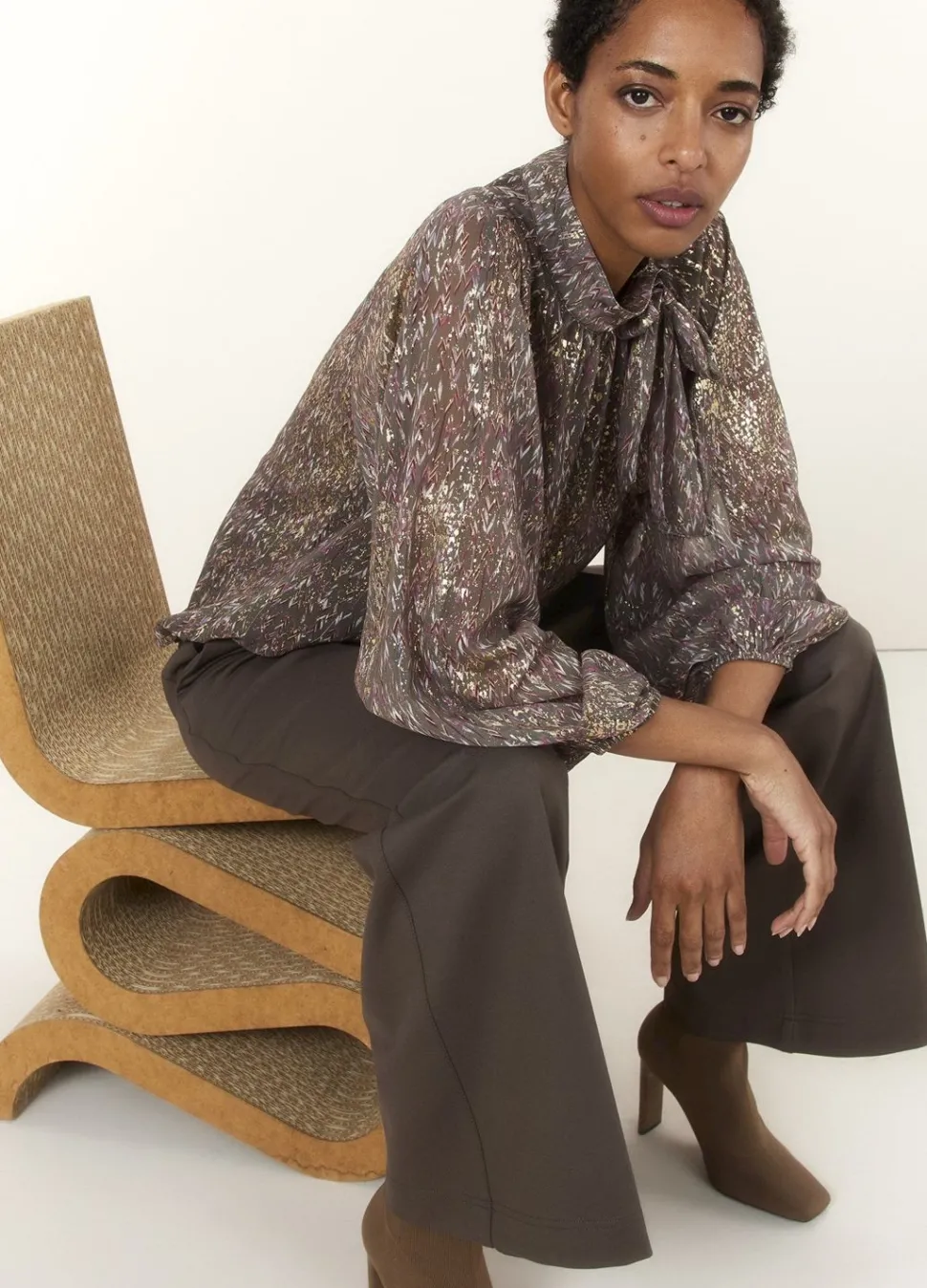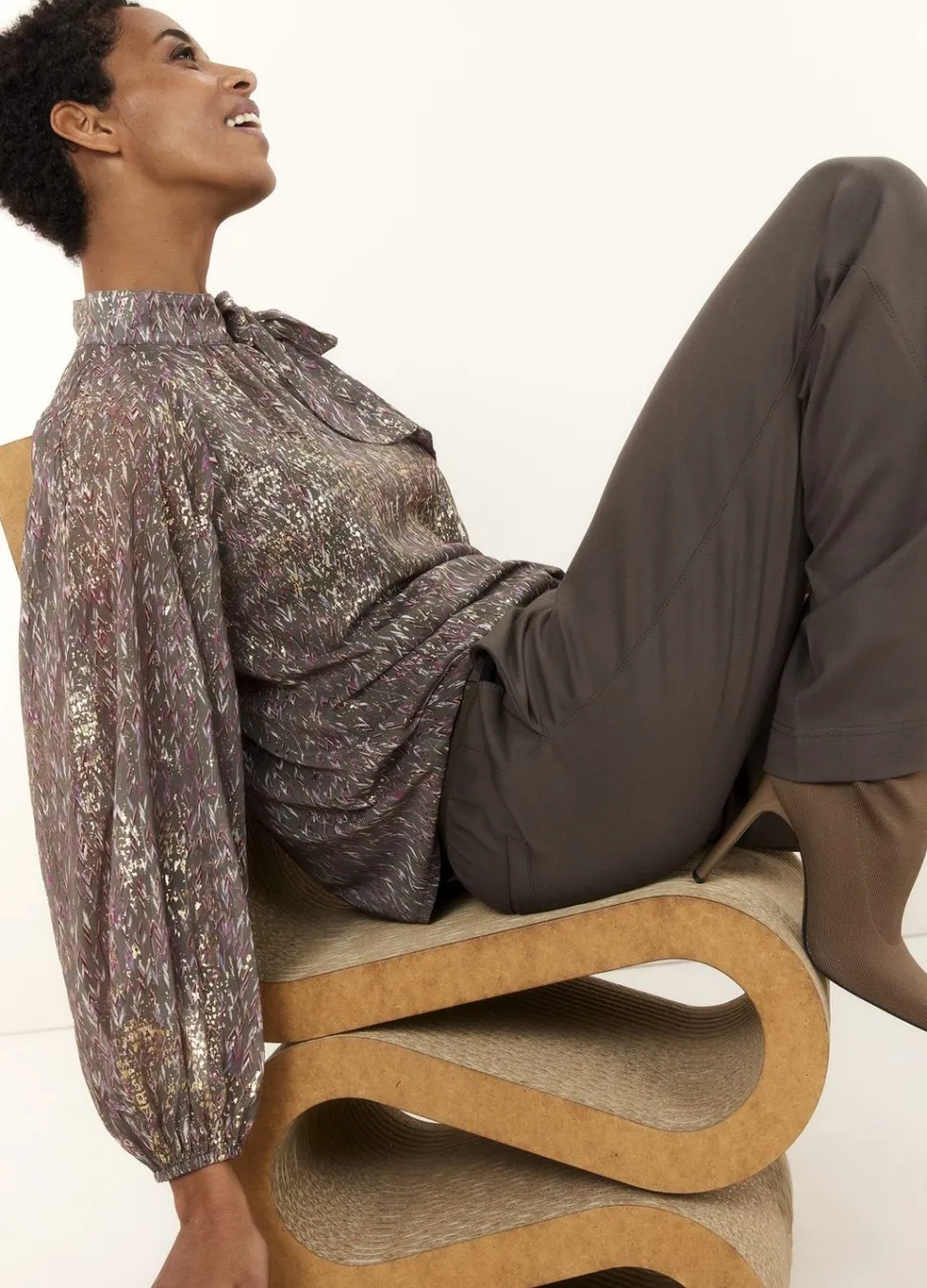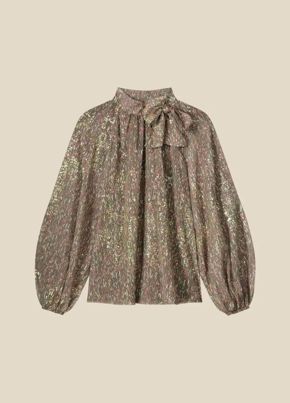Deze Top Met Relaxte Fit Heeft Lange Mouwen Met Boorden Met Elastiek En Een Ronde Hals Met Knoopje En Afneembare Strik. De Blouse Is Gemaakt Van Een Transparante Stof Die Bedrukt Is Met Foilprint.