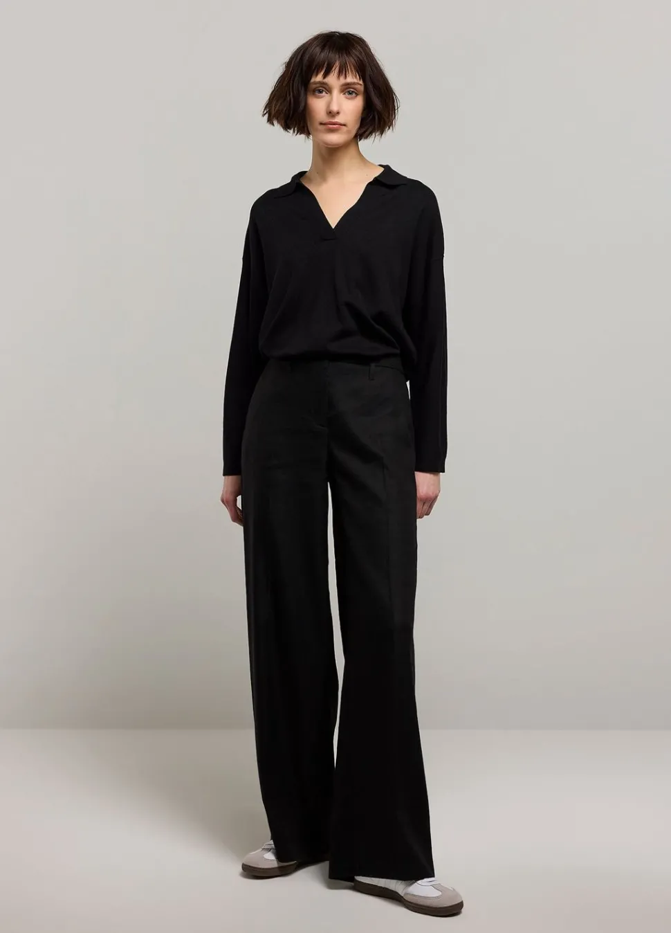 Trui Met Polokraag, V-Hals En Wijde Mouwen. De Trui Heeft Een Rechte Snit En Is Gemaakt Van Een Compact Gebreide Viscose-Polyamide Mix Garen.