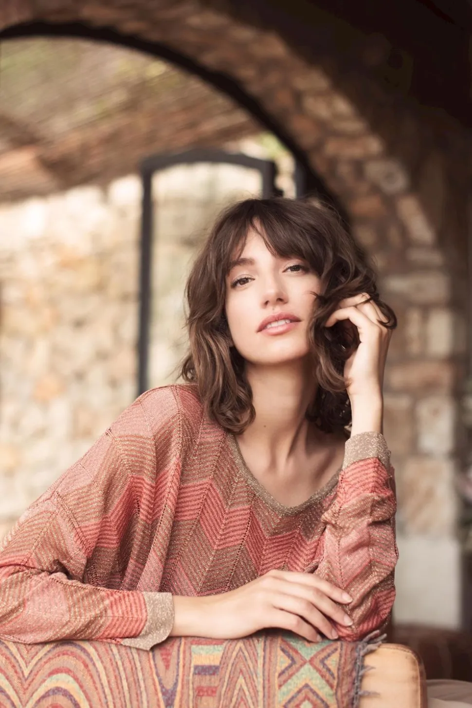 Truitje Met Boothals En Ingebreid Zigzag-Patroon. De Top Is Gemaakt Van Een Metallic Lurex-Viscose Blend Garen.