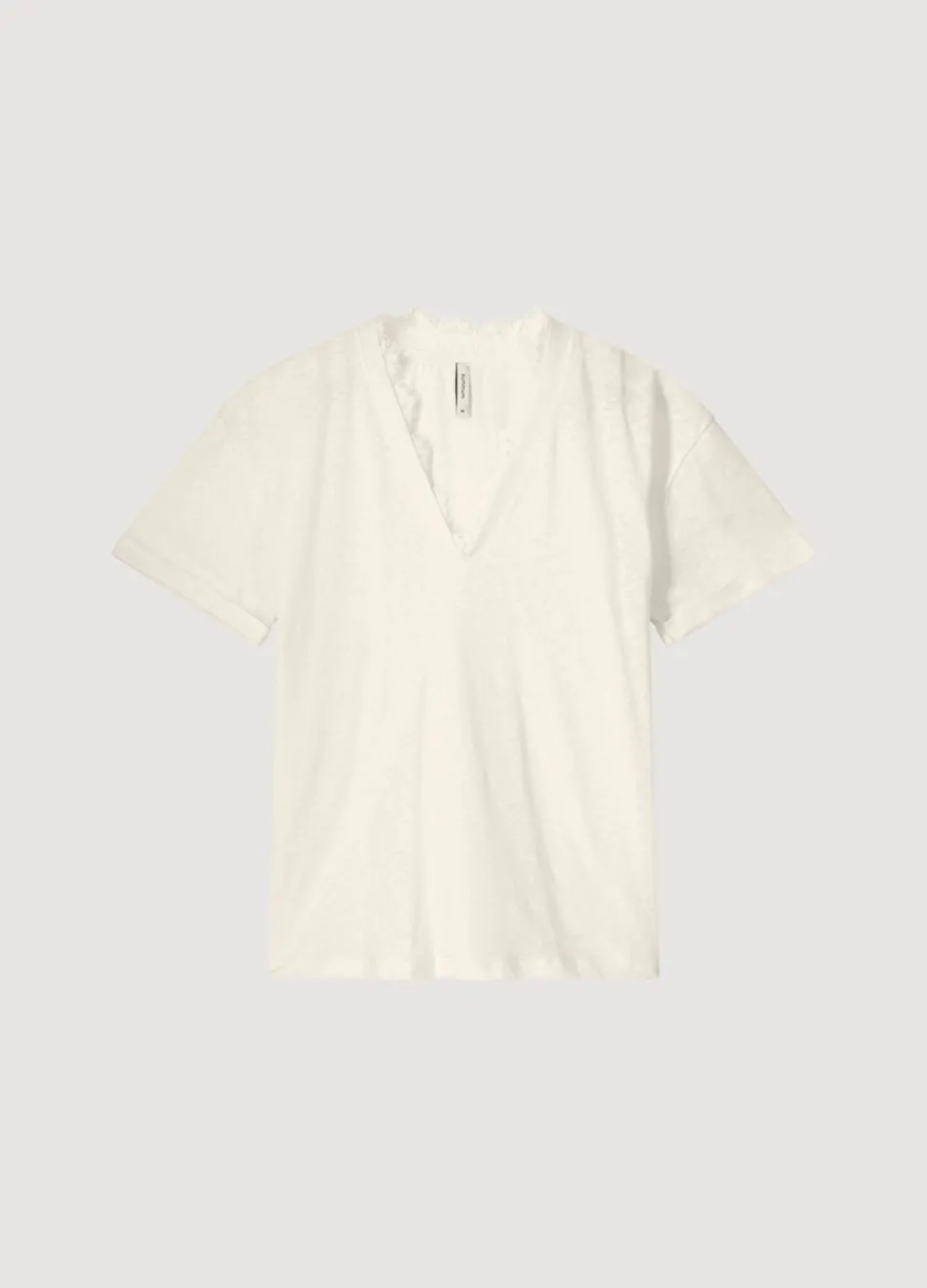 T-Shirt In Een Luchtige Linnen-Jersey Mix. Het T-Shirt Heeft Een Brede V-Hals Met Een Omlijsting Van Kant.